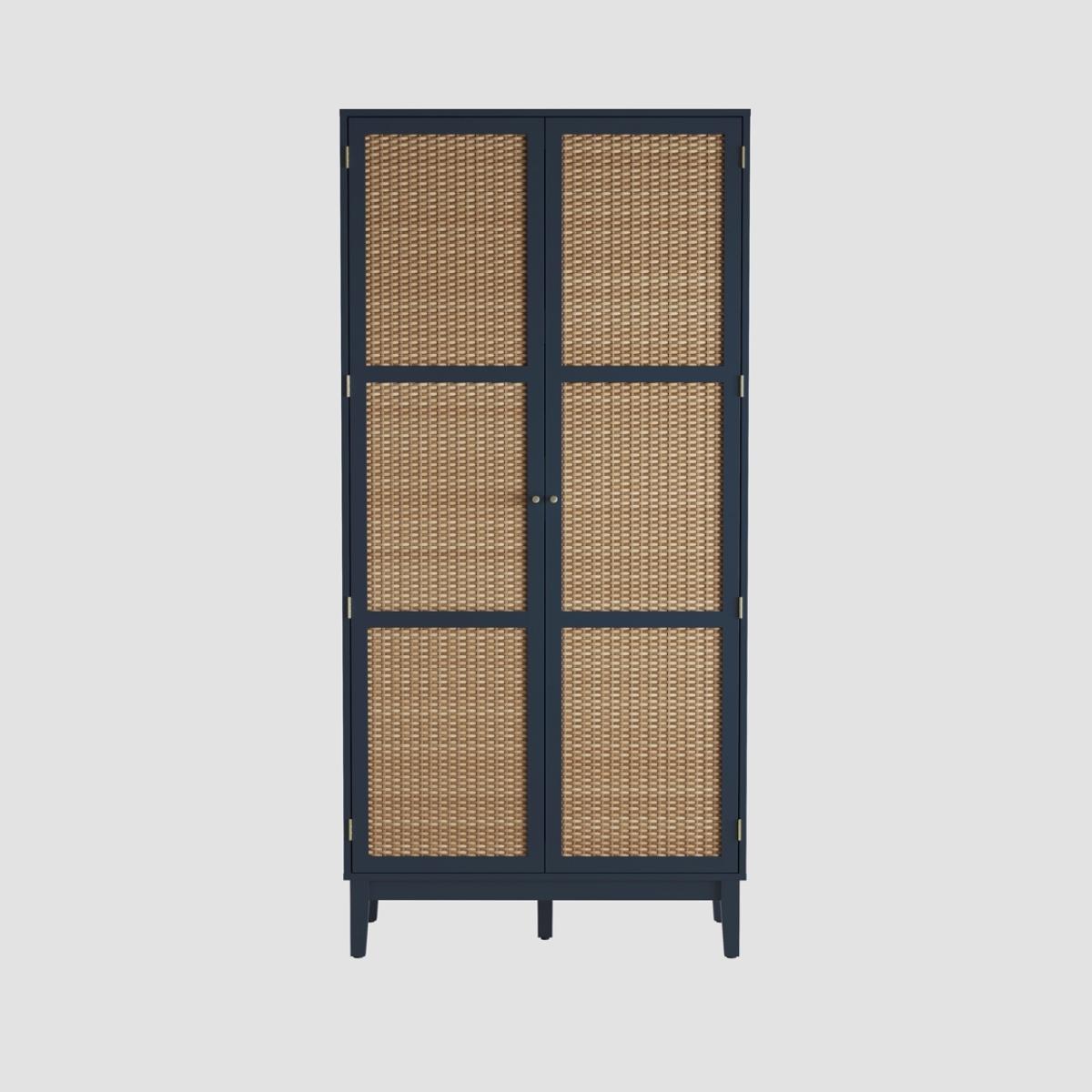 I love this piece for its bold colour and the way it combines practicality with style. The Bordeaux blue makes it a standout feature in both modern and eclectic interiors, and it works particularly well in spaces with natural materials or neutral palettes, adding a pop of colour without overwhelming. Its rattan-style door panels bring a touch of texture and warmth, making it perfect for boho, coastal, or relaxed contemporary schemes. For styling, consider leaving the wardrobe doors slightly open to reveal curated organisation inside or pair it with other blue or wooden accents to create a cohesive look. It’s a versatile, statement storage solution that brings both function and personality to a room.