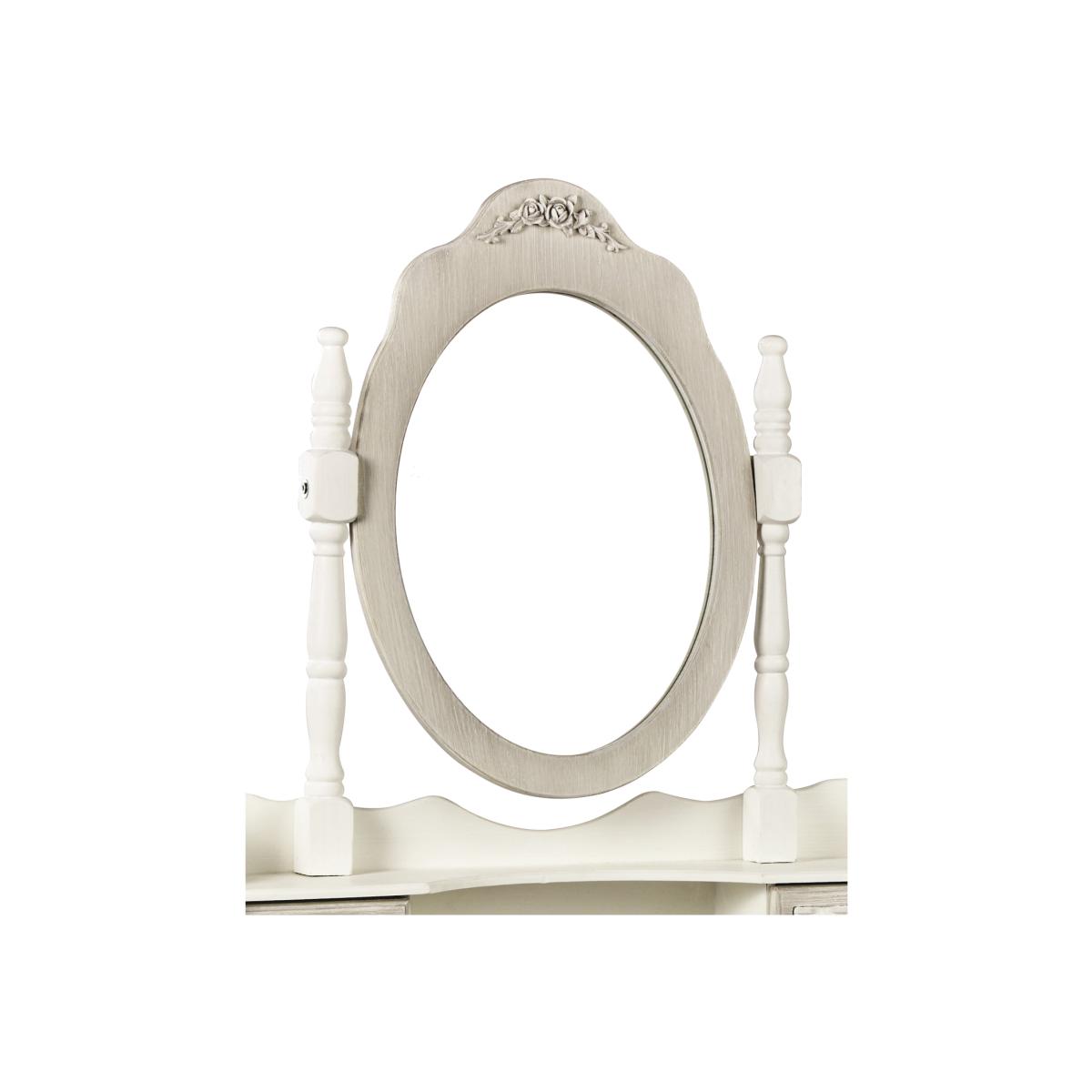 Dimensions. H69.5 x W70 x D17 cm Features. Dressing Table Mirror only. Beautifully intricate lattice work on the drawer fronts gives them a lovely basket effect. Hand painted range of furniture Hand painted in an off white finish. The delicately styled love heart shaped handles offer the perfect finishing touch. Fully assembled..
