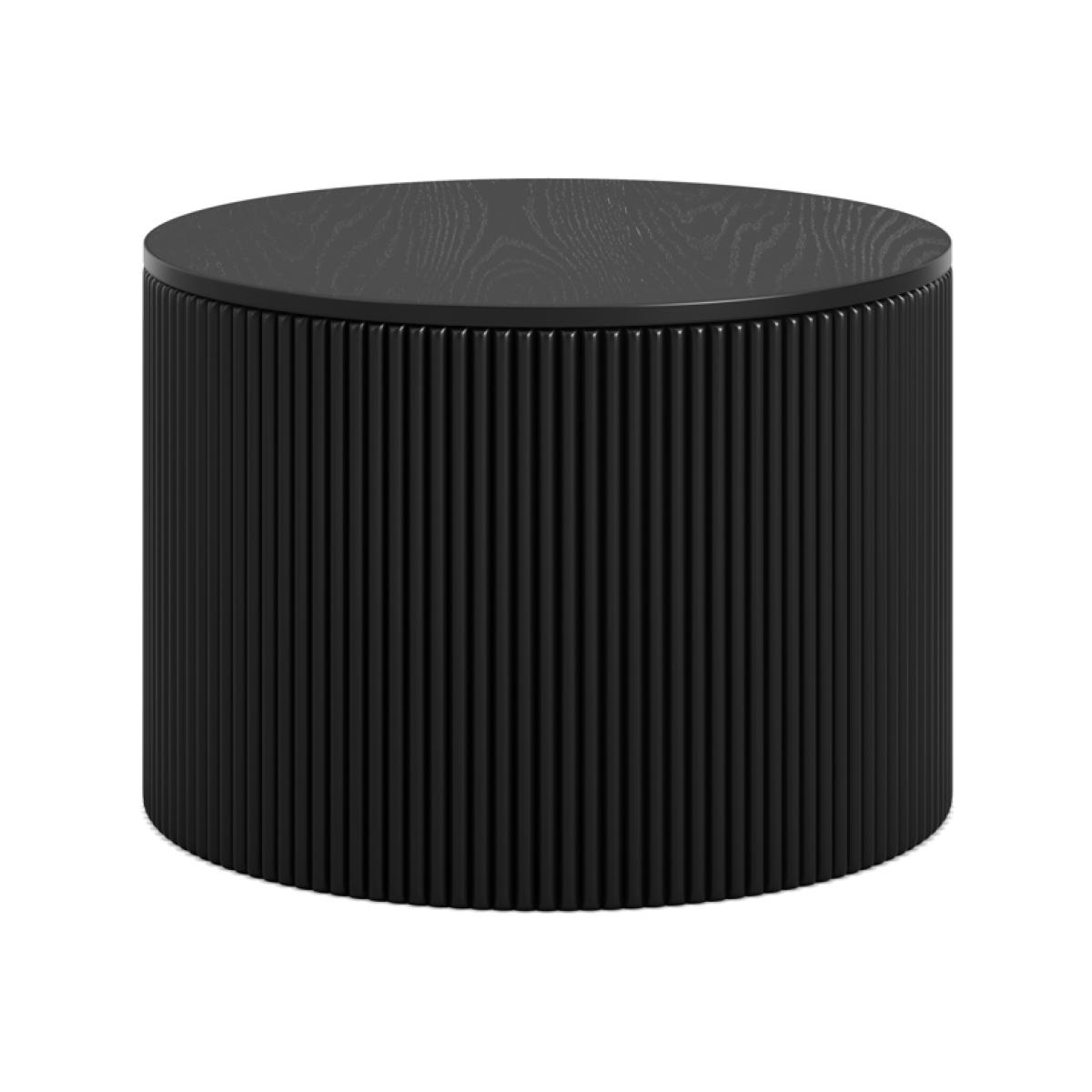 I love this black coffee table for its sleek, contemporary design and versatile appeal. Its cylindrical form and textured finish make it a statement piece that works well in modern, minimalist, or even industrial interiors. It pairs nicely with both neutral colour palettes and bolder accents, acting as a grounding element in a living space. For styling, consider keeping the top clear for a clean look or adding a few curated accessories - such as a modern tray, candles, or a small plant - to add visual interest without cluttering. Its substantial presence also means it can seamlessly double as a casual dining surface or extra seating, making it both functional and stylish.