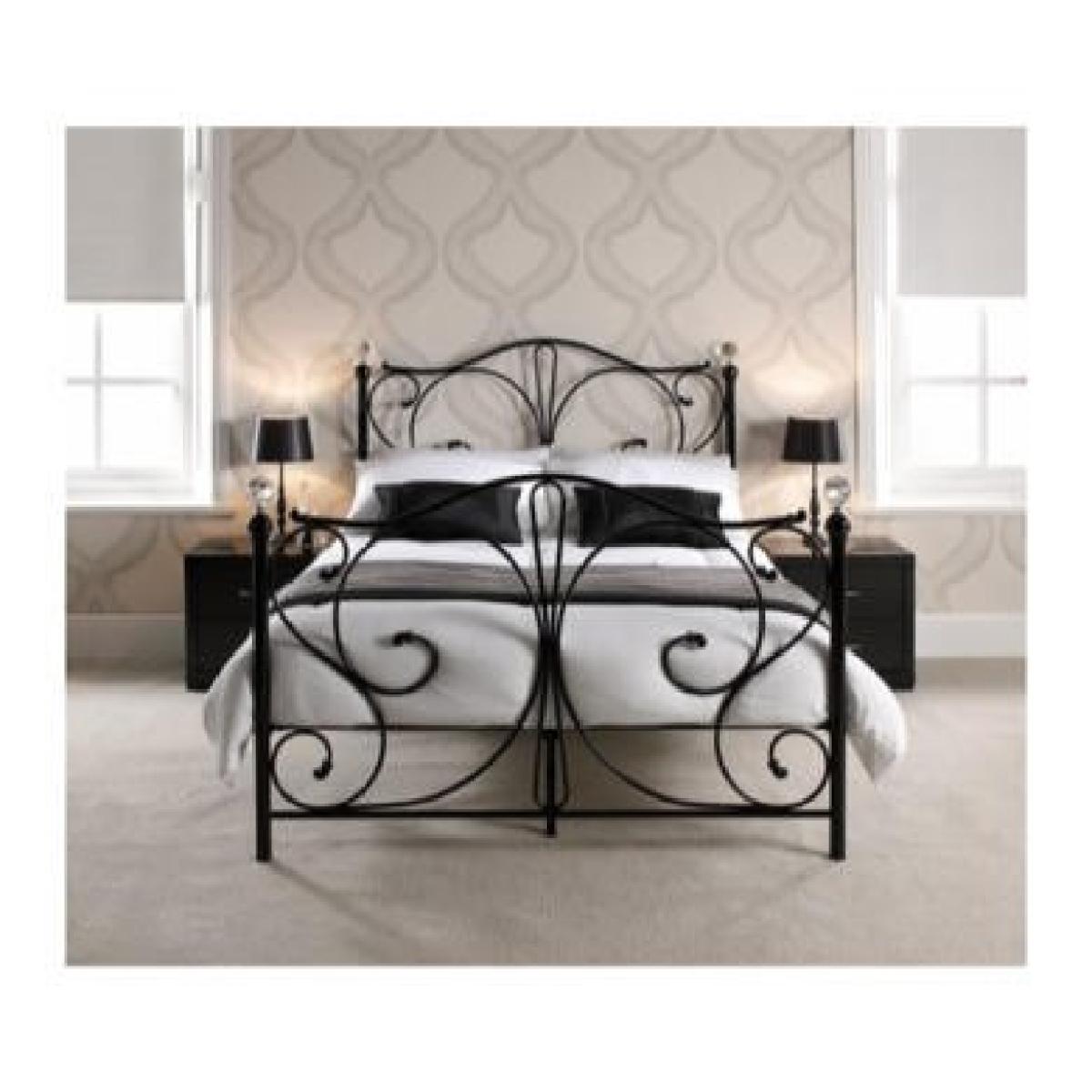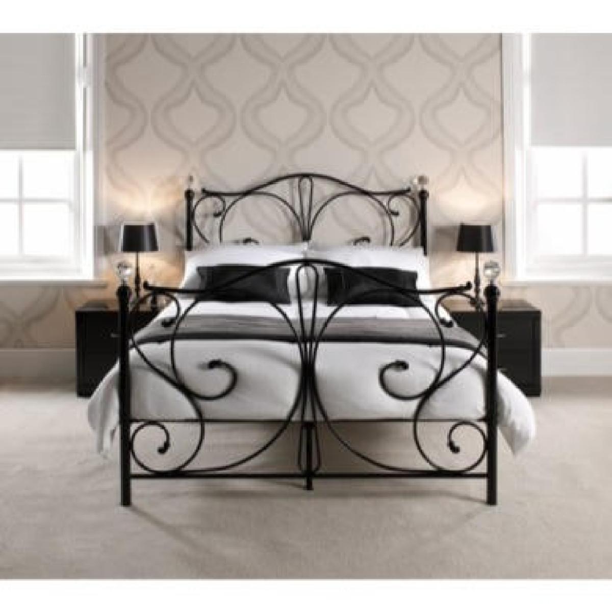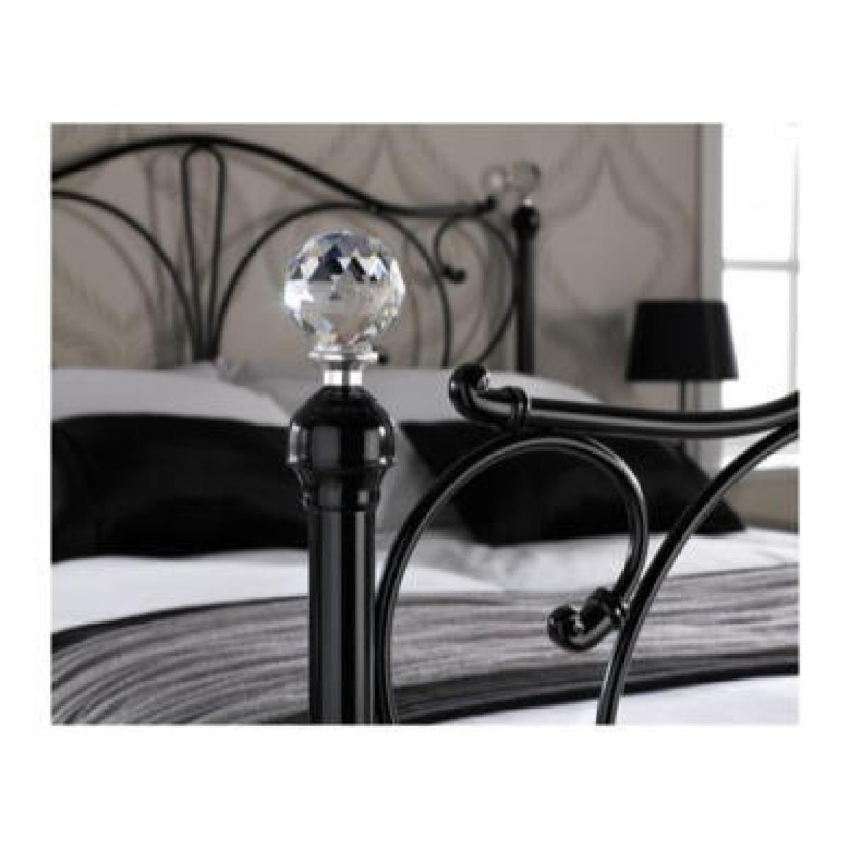 Metal Bed Frame Glossy Black Finish Traditional Design Also Available in Double and Kingsize Crystal Finials Beech Sprung Slats Mattress Is Not Included