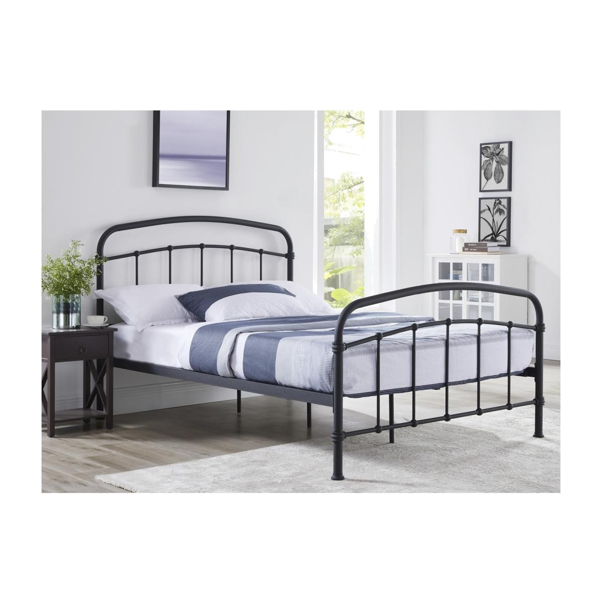 Dimensions W146cm x D200cm x H113cm Features. Industrial style chic design. Curved headboad and footboard. Curved sprung slats. Strong and sturdy metal frame Assembly required..