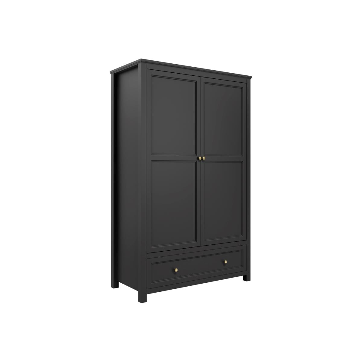I love this wardrobe for its clean lines and versatile style, making it a great addition to both modern and traditional bedrooms. Its dark finish offers a sophisticated look that pairs well with lighter or contrasting tones, adding depth to the space. Practical styling tips include accessorising with brass or gold hardware and keeping the surrounding decor minimal to let the wardrobe stand out. It's also a good idea to incorporate smart organisational inserts inside to maximise storage efficiency. Overall, this piece works beautifully in interiors that aim for understated elegance, providing both function and a refined aesthetic.