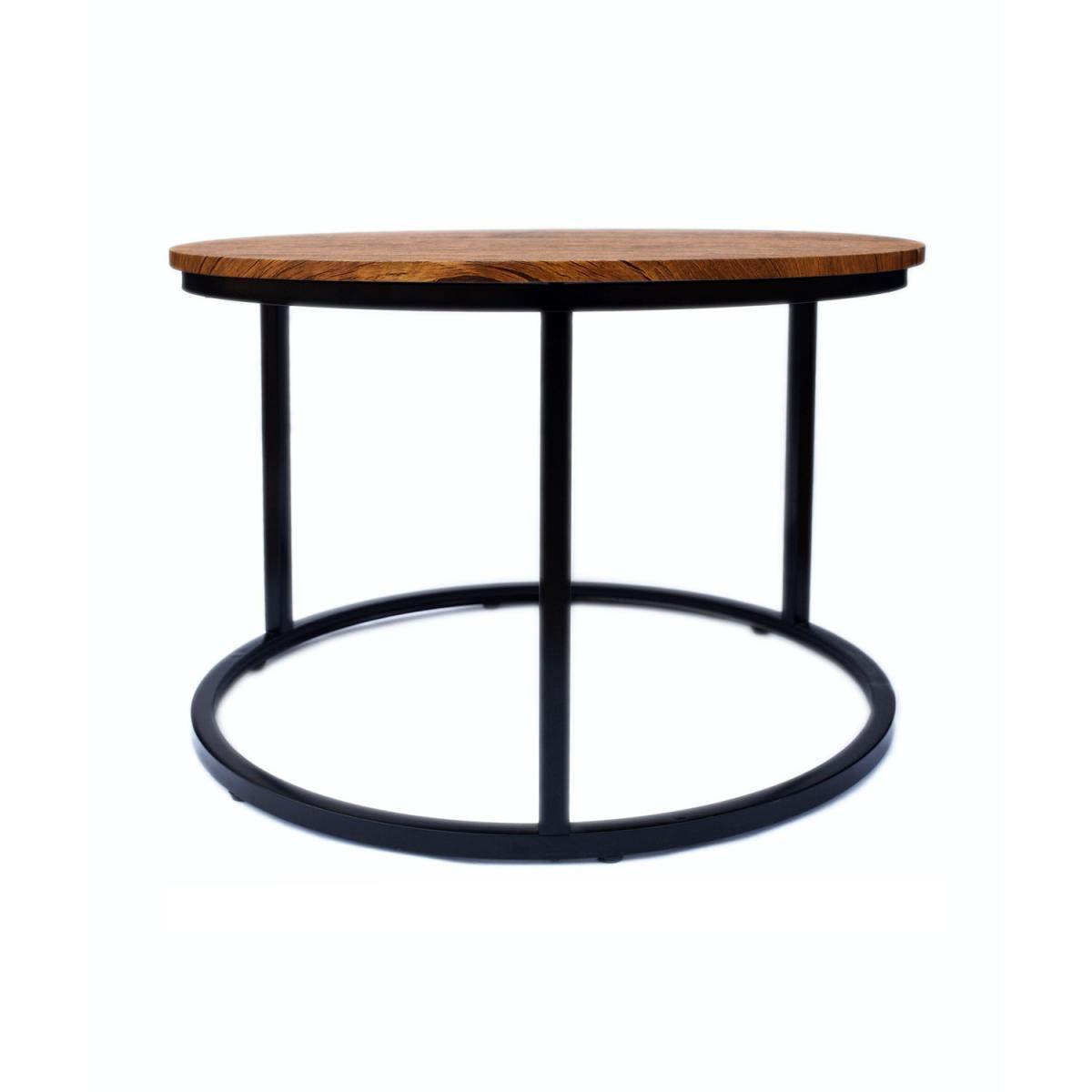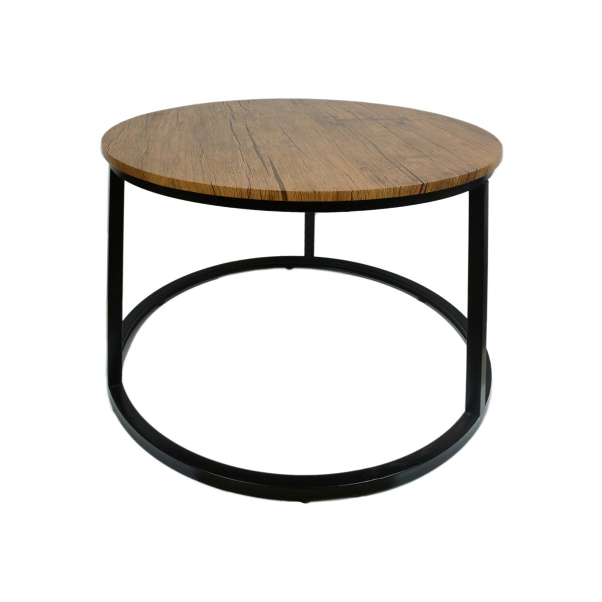 Dimensions H45 x W60 x D60 cm. The Java collection is a cost effective way to add that chic industrial feel to your home. It has metal frames with distressed effect tops. Features. Distressed effect wood top Black metal frame. Simple design. Industrial style coffee table. Easy assembly..