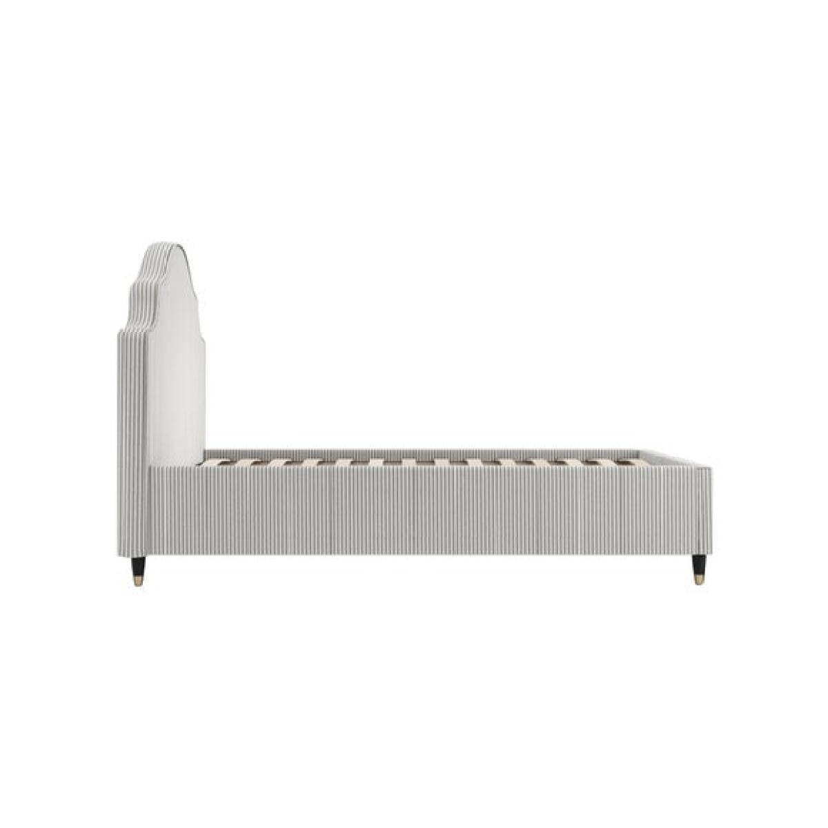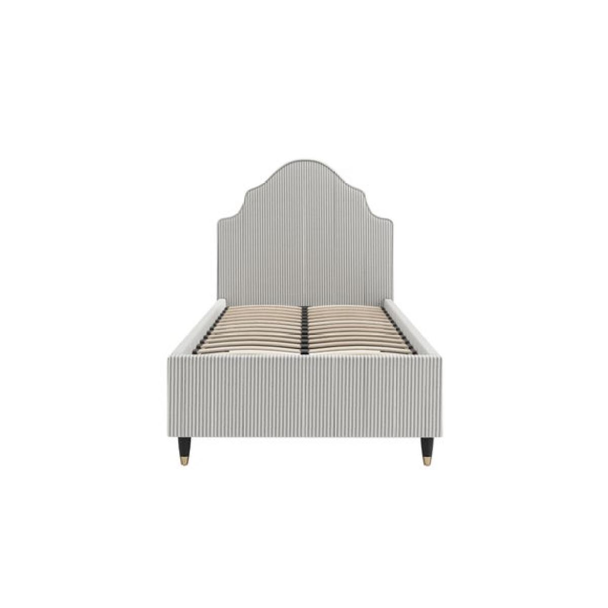 * Made from wood * Cotton material * Striped design * Classic style * Available in multiple sizes With a luxurious cotton upholstery in a soft grey tone, the LPD Monterey Cotton Fabric Bed Frame offers elegant styling and comfort. Its ornate headboard and brass-capped legs add decorative flair, while sprung slats provide essential mattress support—an ideal blend of beauty and functionality.
