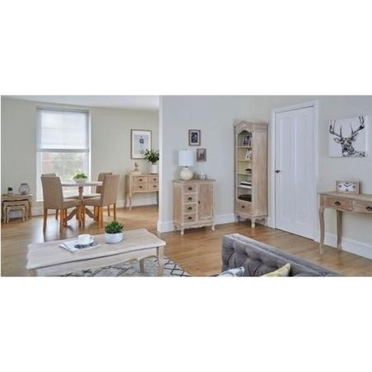 I love this little console for its weathered oak finish, which adds a soft, rustic charm to both traditional and contemporary interiors. It works particularly well in hallways or living rooms where its compact size can serve as a practical surface for lamps, plants, or decorative accents. Practical styling tips include pairing it with vintage accessories or organising your keys and mail in the drawers for a clutter-free look. Its understated design makes it versatile enough to blend seamlessly into shabby chic, coastal, or farmhouse-inspired spaces, and layering with textured textiles or metals can elevate its overall aesthetic.