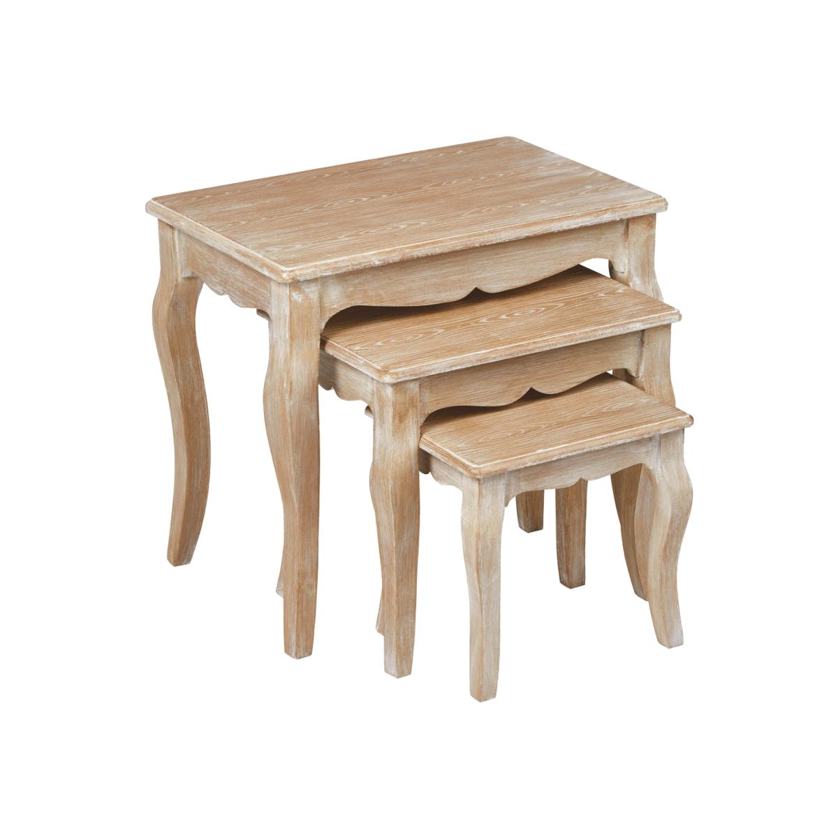 Dimensions W53cm x D35cm x H47cm. One of our most extensive ranges this hand crafted weathered oak dining and living room furniture provides the perfect option for someone looking for a consistent traditional look. Large table dimensions W53cm x D35cm x H47cm Medium table dimensions W41cm x D30.5cm x H38cm. Small table dimensions W30cm x D24cm x H29cm Features. Nest of 3 tables. Weathered oak finish. Elegant design. Part of the Provence range. Fully assembled..