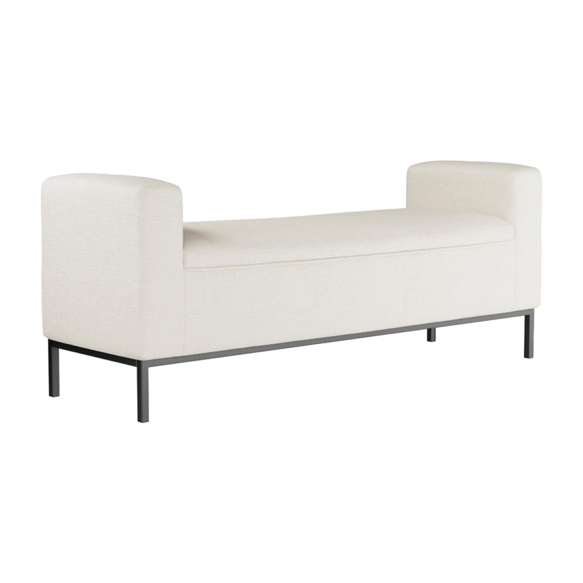 This bench offers a sleek, minimalist silhouette with its clean lines and neutral ivory tone, making it quite versatile for various interiors. I love it for contemporary spaces, especially in entrance halls or as seating at a dining table, where its simple elegance can be highlighted with bold cushions or contrasting textures. It also works well in a bedroom as a stylish addition at the foot of the bed or in a dressing area for practicality. When styling, consider pairing it with colourful or patterned cushions to add personality, and keep the surrounding décor understated to let its understated charm shine. The slim black legs provide a modern touch, anchoring the piece without overwhelming the space.