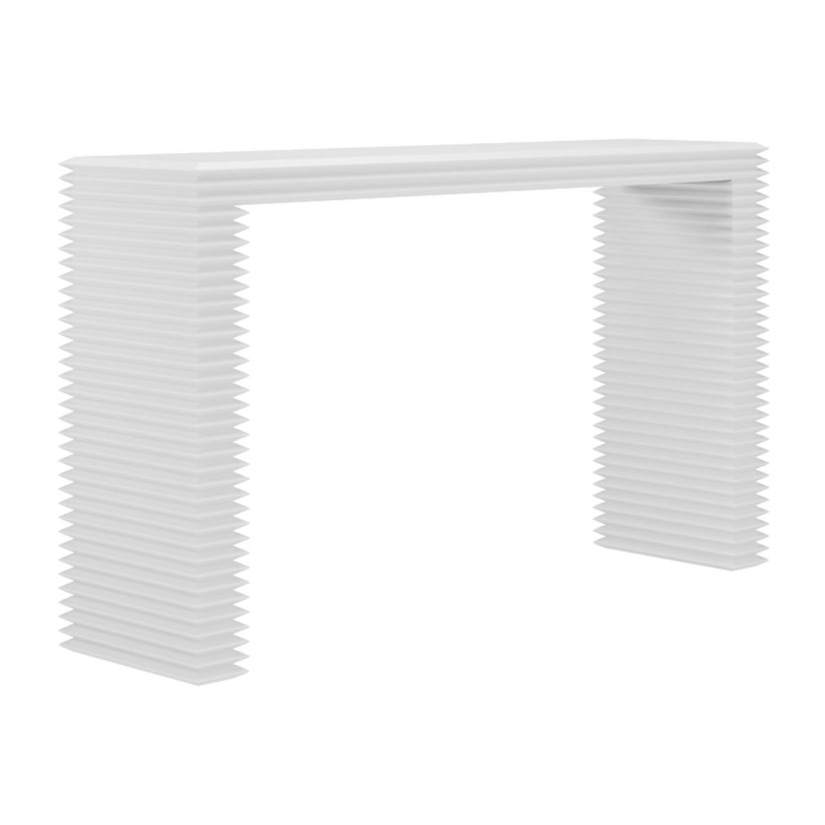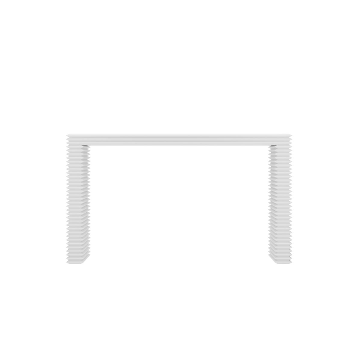 I love this console table’s contemporary, sculptural design, which makes it an eye-catching focal point without overwhelming a space. Its clean lines and crisp white finish work particularly well in modern or minimalist interiors, but it can also provide a fresh contrast in more eclectic or Scandinavian schemes. Practical styling tips include using it as an entryway statement, topped with a sleek mirror or artwork, or as a surface for decorative objects like vases or statement lighting. Its bold profile also works well paired with textured cushions or soft rugs nearby to add warmth and balance to the sleek surface. Keep accessories minimal to highlight its architectural form and let it stand out as a statement piece.