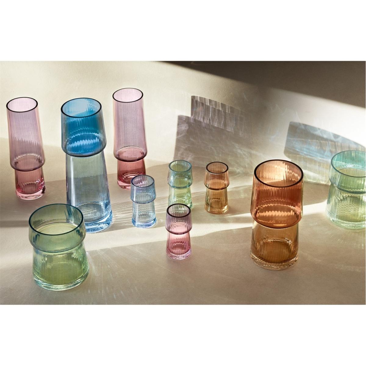 I love this piece because of its sleek, contemporary shape and subtle colour gradient, which makes it a versatile addition to many interiors. It works particularly well in minimalist or modern settings, adding a touch of visual interest without overpowering the space. For styling tips, consider pairing it with simple floral arrangements or greenery to highlight its transparent hues, or keep it empty for a sculptural accent. It’s equally suited to tabletops, shelves, or as a standalone decorative object, making it a practical yet stylish choice for injecting a hint of colour and texture into your interiors.