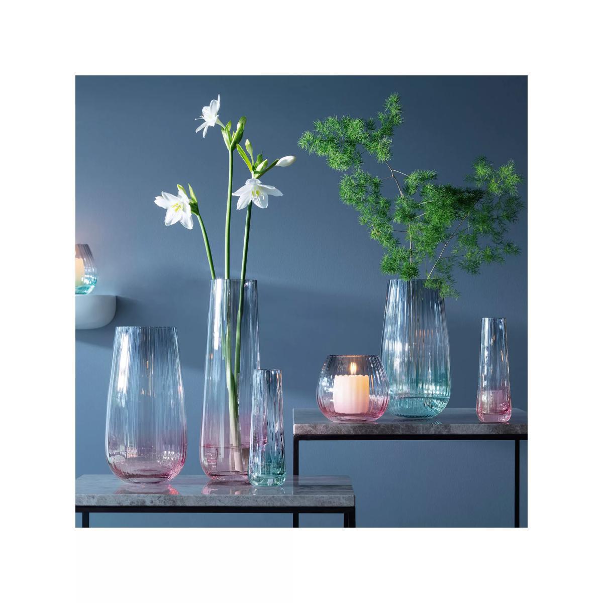 Inspired by the colours of a twilight sky dissolving into darkness as the sun sets, the handpainted lustre on the LSA International Dusk vase has an iridescent effect, enhancing the optic texture of the mouthblown glass. Ideal for displaying mixed bouquets.