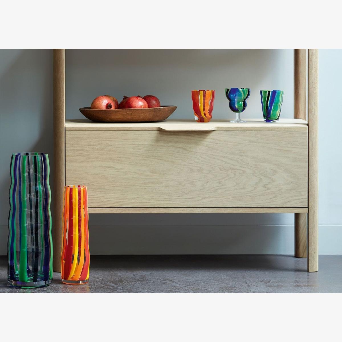 The Folk vase, from LSA International, is mouth-blown from clear glass and features hand-applied stripes in a striking black, green and blue colourway. Inspired by Polish folk art, it’s a distinctive vessel for accommodating real or faux flowers, or simply for displaying as a statement by itself.