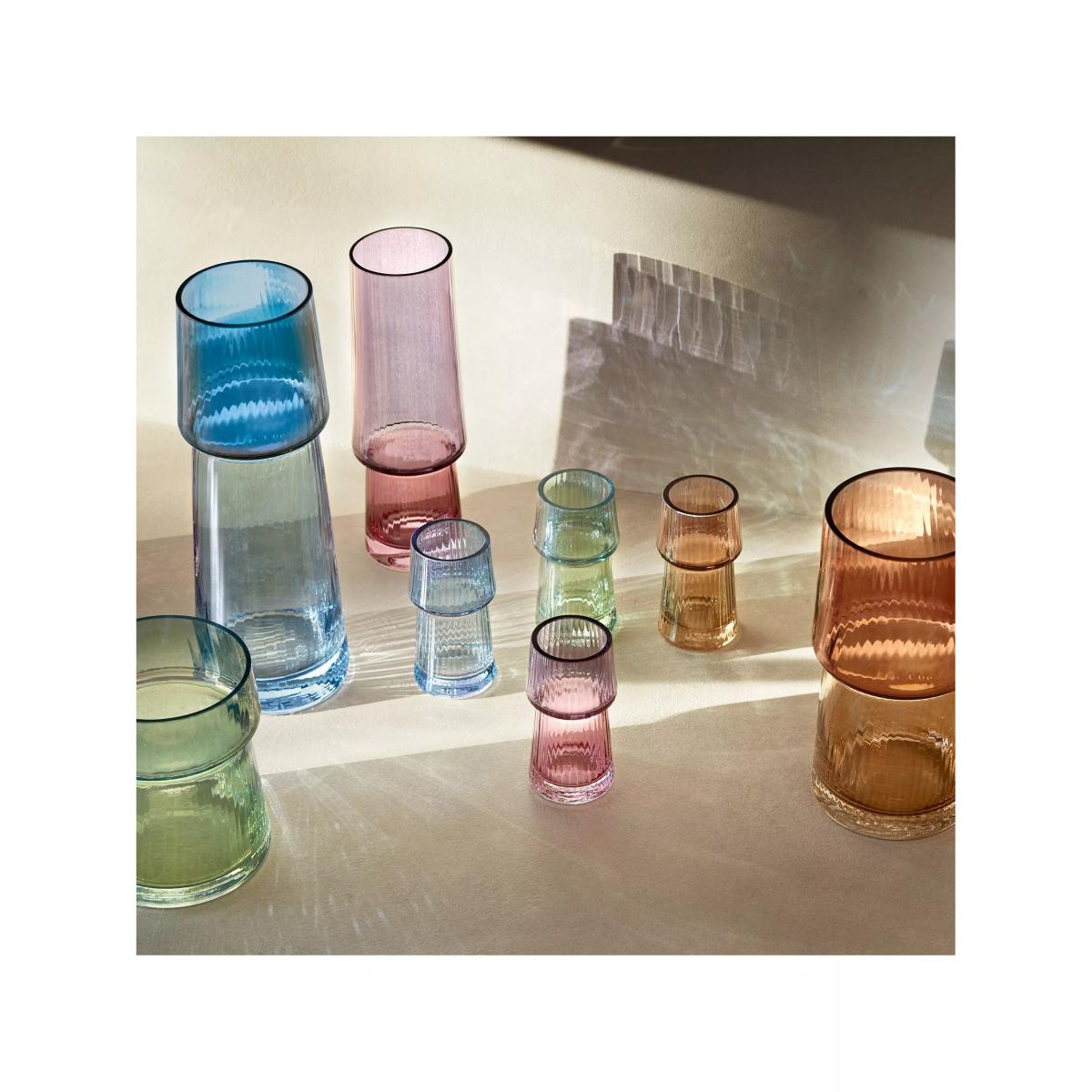 Mouth-blown, hand-painted glass vase or candle holder with a dual-tone iridescent finish inspired by precious gemstones. Part of the LSA International Gems collection of glassware.