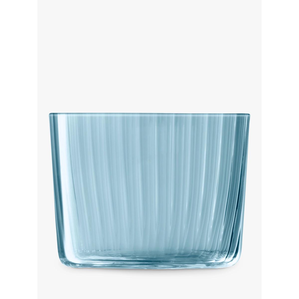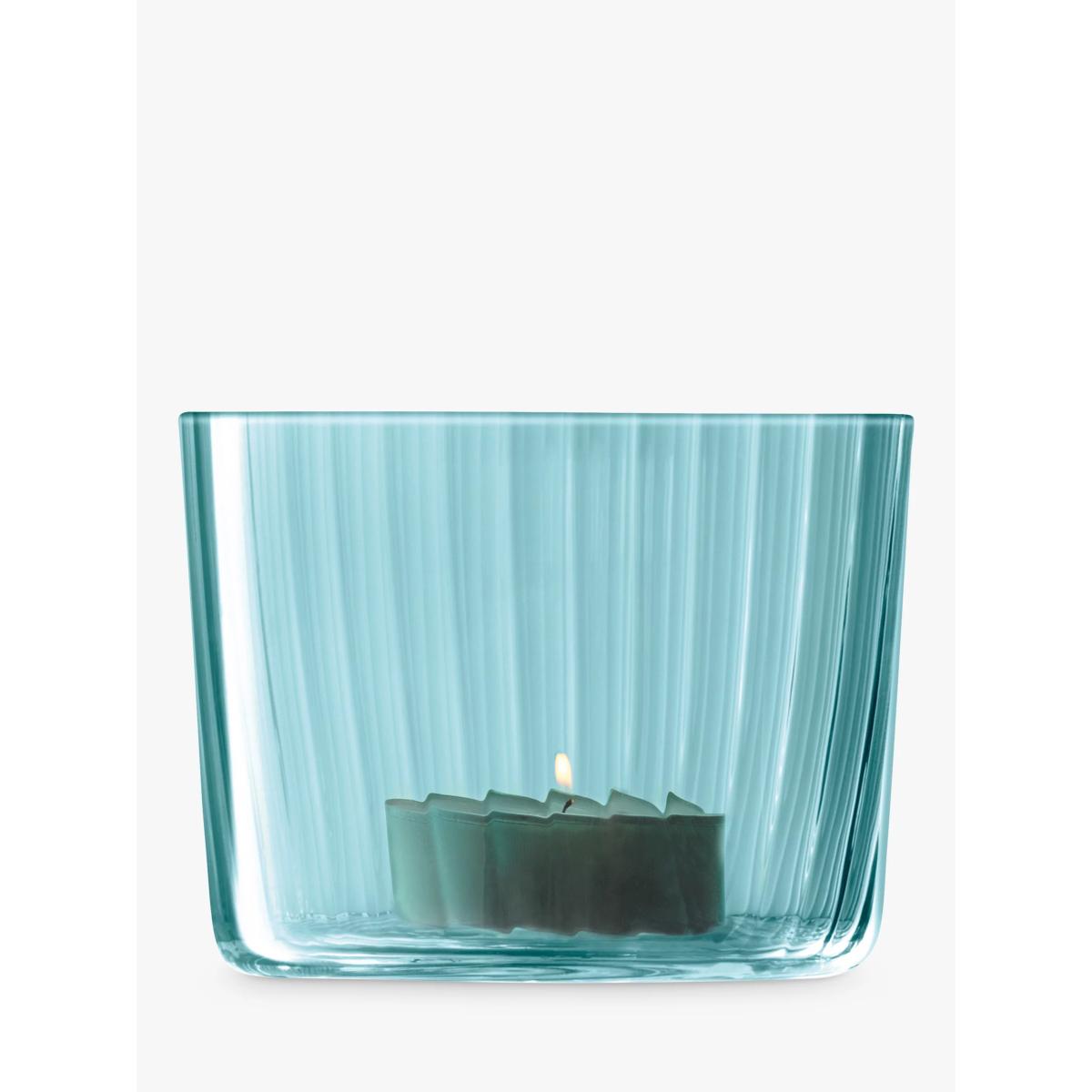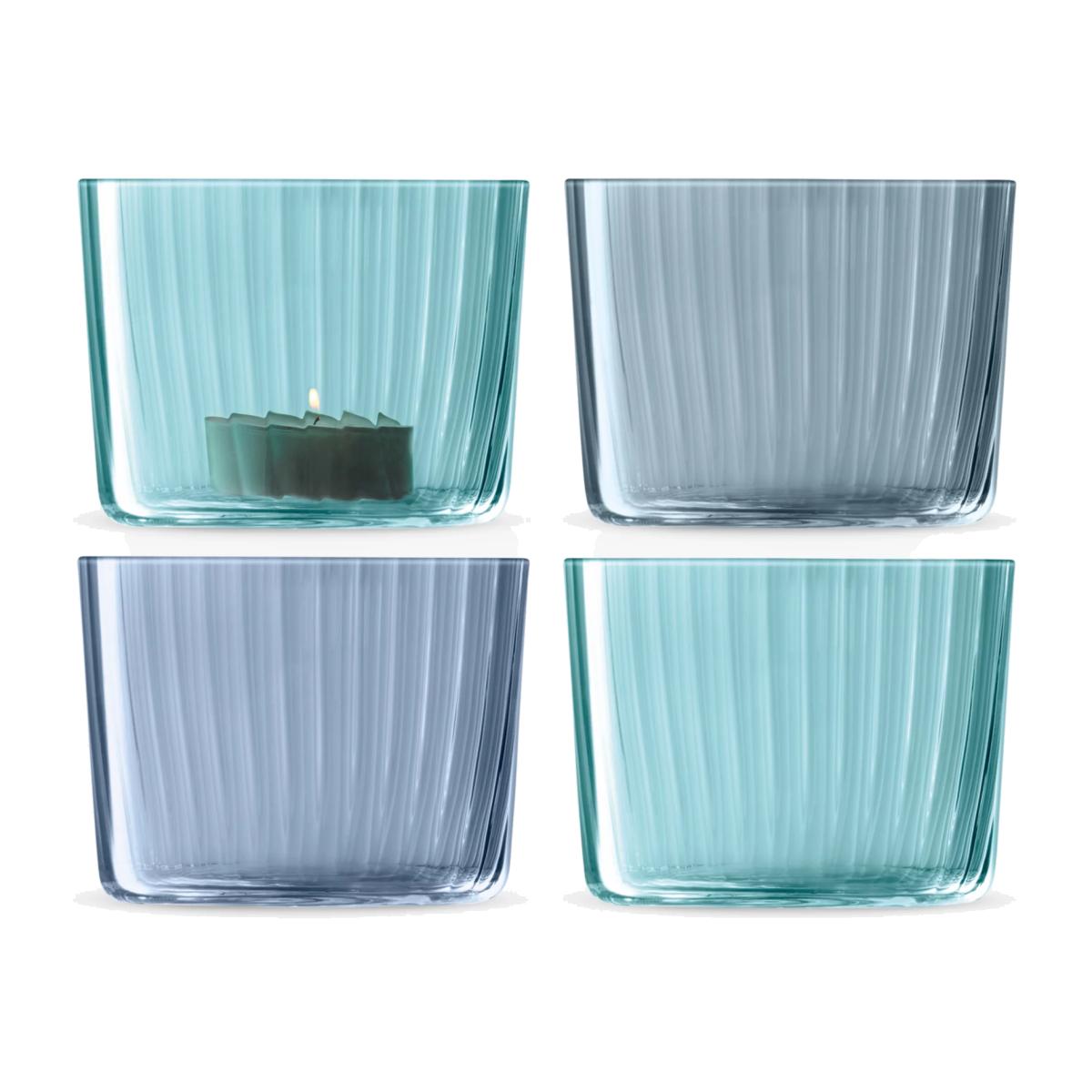 Four low, fine-walled tealight holders from LSA International with a fluted texture. Hand-painted in assorted sheer lustres of the same tone, inspired by the colours of semi-precious gems.
