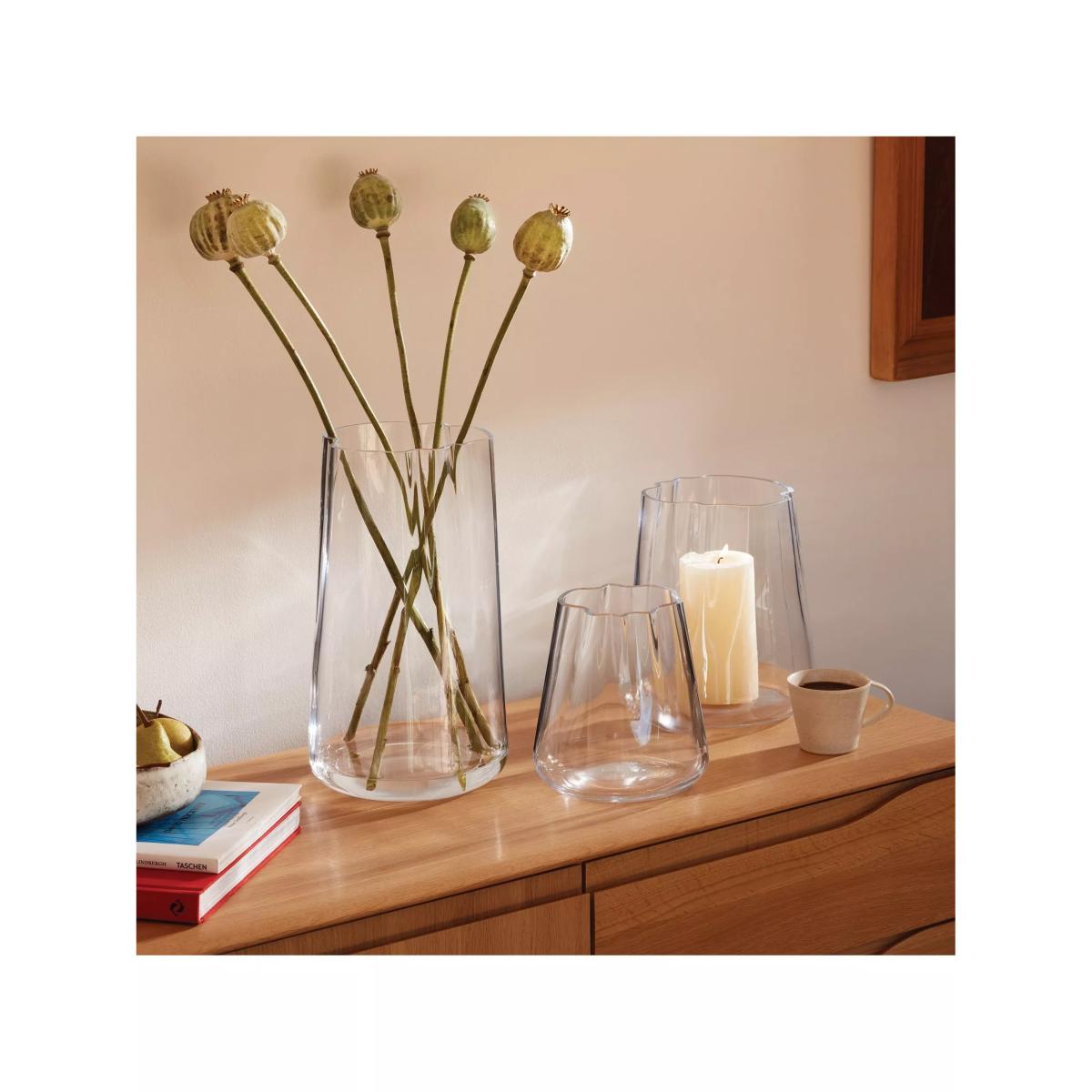 I love the Lagoon glass vase for its clean, modern silhouette and versatile transparency, making it an easy addition to various interior styles. It works particularly well in minimalist or contemporary spaces, where its simple form can shine, but it also adds a subtle touch of elegance to more eclectic or scandi-inspired interiors. Practical styling tips include using it as a standalone piece on a dining table or sideboard to showcase fresh flowers or greenery, or filling it with decorative branches or positioned with candles for a relaxed, natural aesthetic. Its size and transparent design make it adaptable for both small arrangements and more substantial displays, keeping things fresh and balanced in any room.