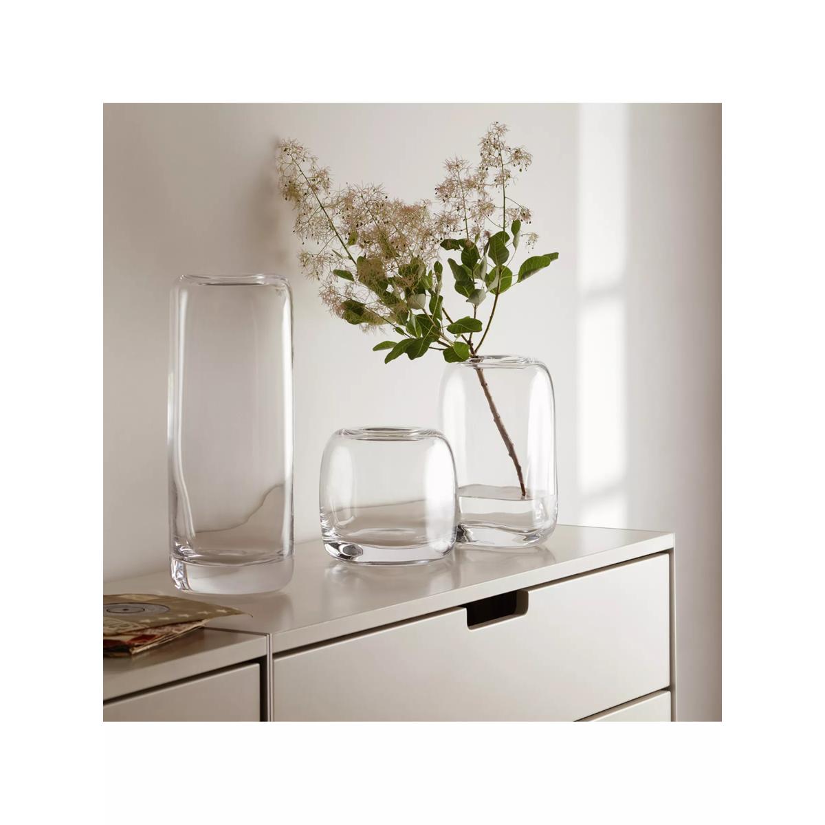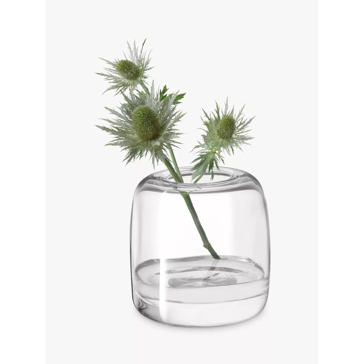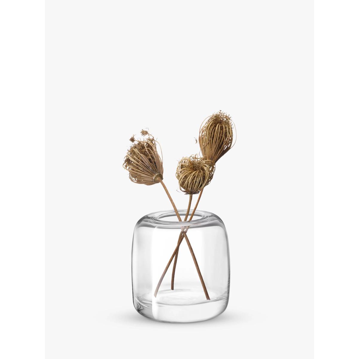 Contemporary vase with gently rounded edges, a thick base and solid walls. Expertly handmade and mouthblown by master glass craftsmen at LSA International. The modern shape of this handmade vase complements simple arrangments, a few stems of foliage or a single flower head. Choose the perfect glassware Glass comes in a range of weights, cuts and clarity and we have a wide selection for you to choose from, designed to suit every budget and occasion. Soda LimeVersatile and available in many colours and styles, soda lime glass is perfect for everyday use. Its ingredients are made up primarily of sand, soda ash and lime which are scientifically measured to ensure that the finished piece is exactly as desired. Soda lime is used in machine made and handmade items. Crystal GlassFiner in quality with greater clarity than soda glass, crystal is ideal for both every day and special occasions. Crystal Glass is superior to Soda Lime Glass in quality and allows for a finer cut rim instead of rounded or rolled edges. Lead CrystalWith a beautiful clarity, weight and resonance, lead crystal is a quality choice. To be called 'Lead', the glass has at least 24% lead oxide in its composition. Lead Crystal was traditionally used for cutting as it was often produced with a thicker wall. This glassware is to be handwashed, only. Sparkx®Neither Soda Lime Glass nor Crystal Glass, this ultra-clear glass is pure, transparent and free of heavy metals. Plus, it is resistant to attrition caused by dishwashers.SON.hyx® This is high-tech crystal glass with all the same ingredients as Crystal Glass but also some extra properties that make it even stronger, with a better clarity. SON.hyx is more resistant to attrition from dishwashers than ordinary Crystal Glass and even Sparkx. LUXION®100% lead-free crystal glass which replaces its former 24% lead crystal composition. It has ultra-clear transparency and exceptional resistance to dishwasher detergents whilst retaining its strength and durability. This glassware type is also 100% recyclable. RecycledGlassware which has been recycled is handmade and reuses otherwise wasted glass. Tempered Tempered glass is heat resistant to withstand high temperatures and the tempering process makes it durable and stronger than Soda Lime Glass. HandmadeThis type of glassware is either handblown or mouthblown. Handmade glass can be produced in any of the glass materials listed above, depending on the quality required and capabilities of the manufacturer. Both types of glassware are usually suitable for use in the dishwasher and any occasion. DecorativeThere are many ways to decorate glass including cutting, spraying, diamond etching, pantograph etching, silk screen printing, sand blasting, hand painting and even adding Swarovski Crystals. Such techniques can be applied to any glass material.