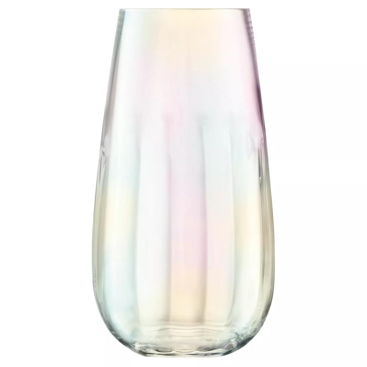 This striking optic vase has been made from glass and mouth-blown by artisans; they are hand painted with an iridescent lustre, inspired by the shimmer of a pearl. This beautiful vase complements the Pearl drinkware and decorative accessories. Perfect for adding a unique addition to your home.