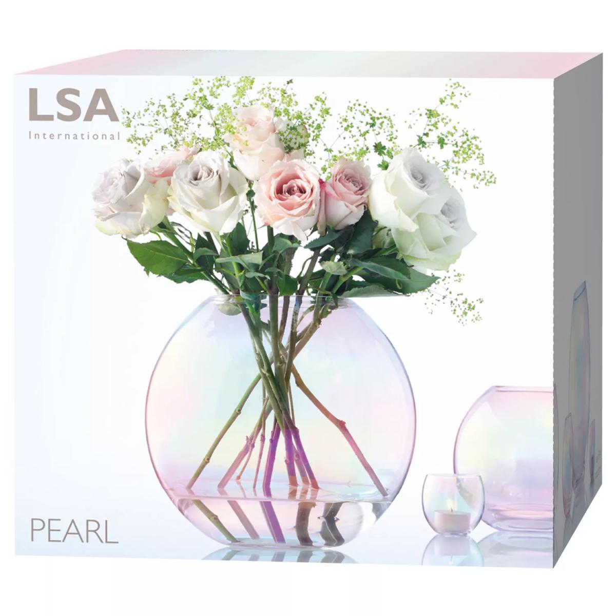Create a spectacular display of blooms in this globe vase from LSA International. Pretty and stylish, Pearl instantly adds a hint of glamour. Each item is hand painted with a sheer pearlescent lustre. Equally at home on an al fresco dining table as at an elegant get-together, the collection's delicate hues and iridescence will be noticed occasion after occasion. Key benefits Iridescent lustre is a natural addition to the assorted pastel colour palette Extends the best-selling collection even further Each item is individually hand painted Gift boxed in photographic packaging with pastel pink accent panels