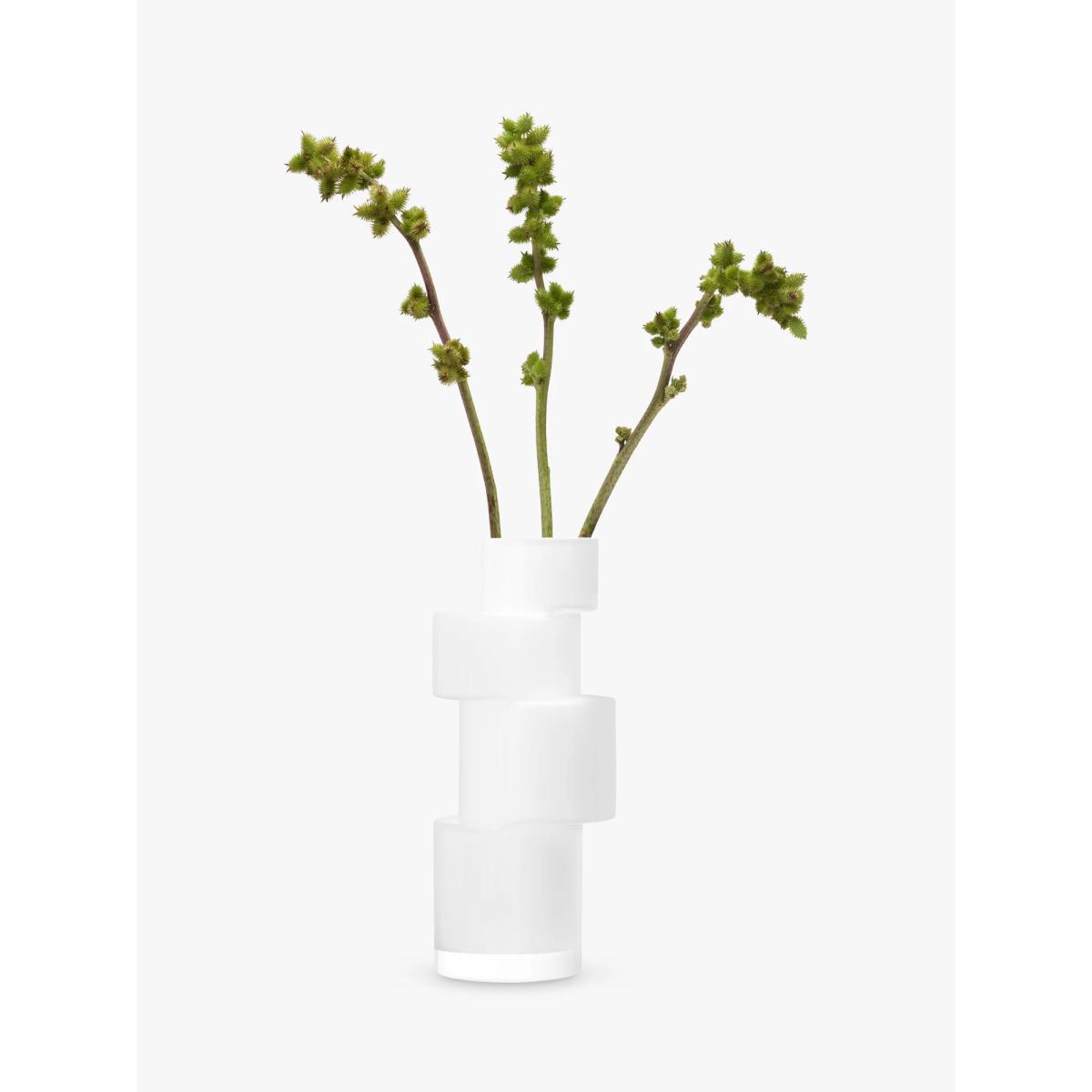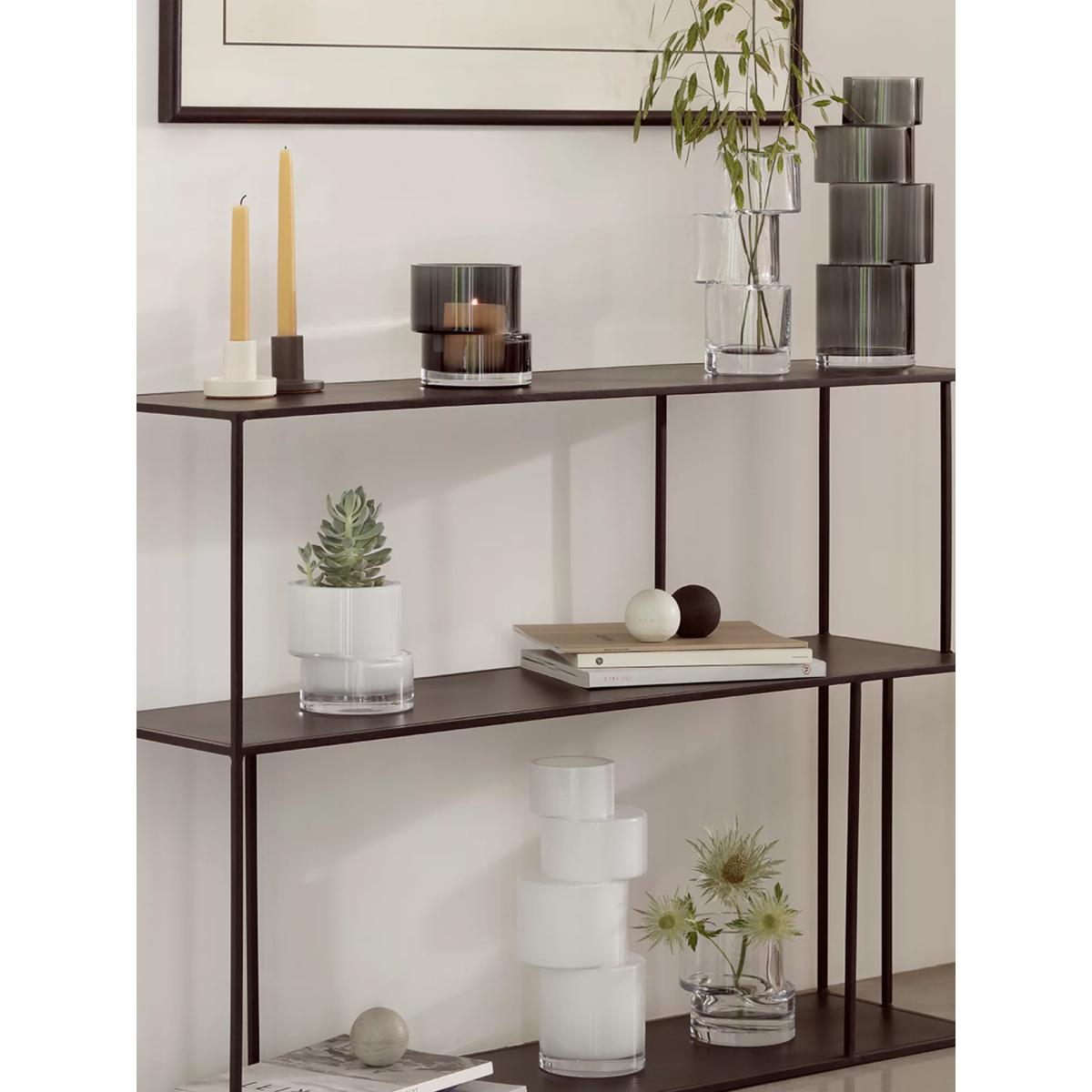 I love the simple, sculptural quality of the LSA international tier vase - its clean lines and geometric forms make it a versatile piece for various interiors. It works particularly well in modern or minimalist schemes, but can also add a striking contrast in more eclectic spaces. For styling, I recommend pairing it with a few single-stem blooms for an understated look, or filling it with elegant grasses or seasonal branches for a more natural feel. Its height lends itself well to placing on side tables, mantels, or open shelving, creating visual interest without overwhelming the space. The white finish makes it adaptable to different colour palettes, ensuring it remains a chic choice in both bold or neutral interiors.