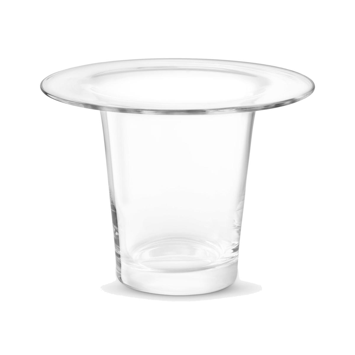 A mouth-blown vase or lantern, with thick walls that fold outwards at the top into a wide and flat brim. Designed for a handful of simple stems, or a candle can be burned within.