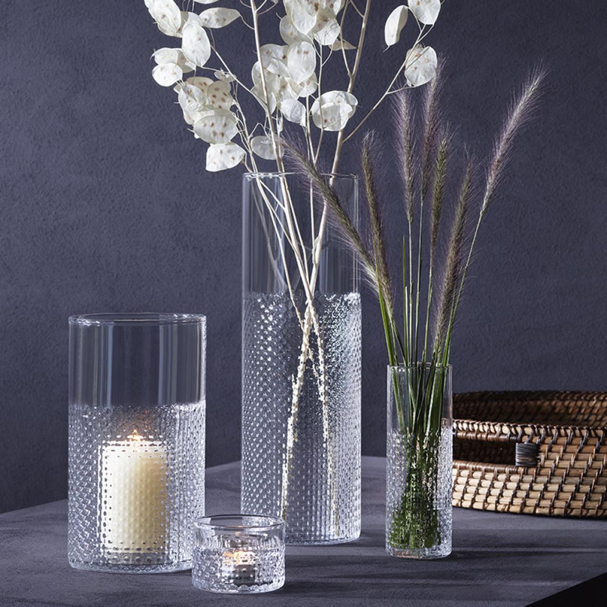 I love this clear wicker vase and lantern for its clean, modern look with a textured twist. It's versatile enough to work in both minimalist interiors and cosy, layered spaces. Its transparent design makes it ideal for displaying fresh flowers or a simple candle to create a calming focal point. For styling tips, try grouping a few with varying heights on a side table or mantle for an interesting visual effect, or use it on a windowsill alongside other glassware to bounce light. Its understated design also means it blends well with natural materials like wood or linen, making it an easy addition to almost any room.