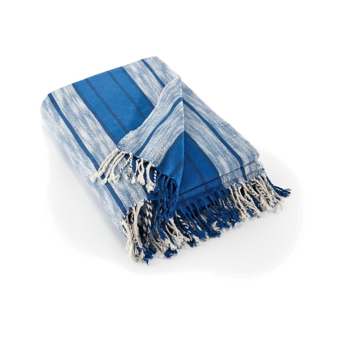 Simple yet delightful, this colourful striped blanket throw has fringed edges for a playful look. Product Details. 100% cotton. Thread count: 70 threads/cm². Contrast fringes. Care Advice: Machine washable at 40°CSize. 130 x 170cm.