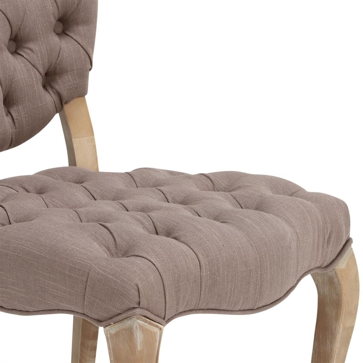 I really like this chair because of its soft taupe fabric and classic button-tufted back, which add a touch of elegance without feeling too formal. It works beautifully in both traditional and contemporary interiors, especially those with neutral palettes or a mix of textures. To style it effectively, pair the chair with a minimalist dining table to keep the look airy, or let it stand out in a more eclectic setting with colourful tableware and accessories. For practical tips, adding a simple cushion can boost comfort and personalise the space, while choosing a protective floor pad can preserve those lovely wooden legs. It’s a versatile piece that can elevate your dining area with both function and style.
