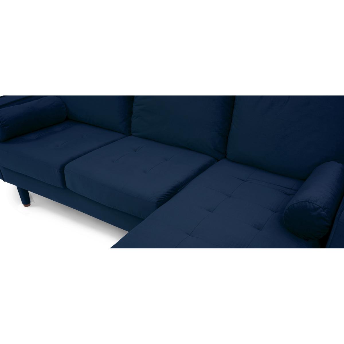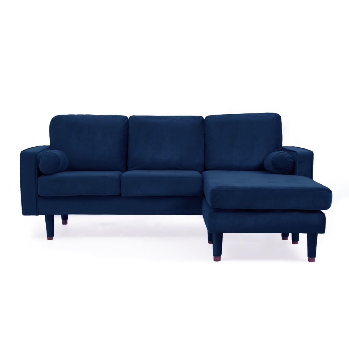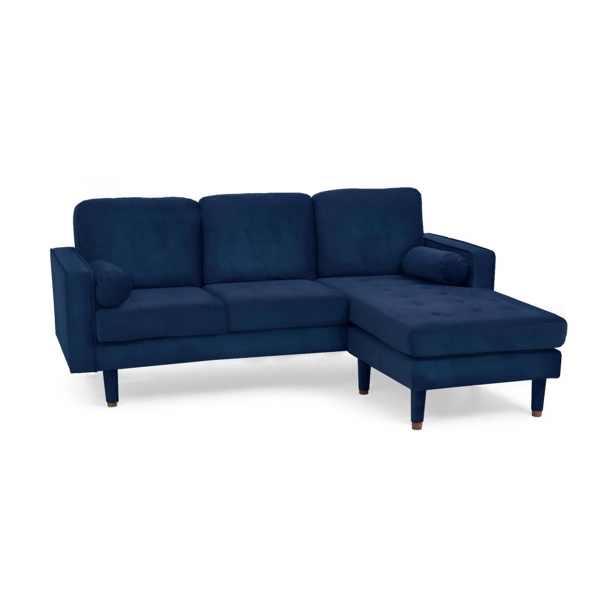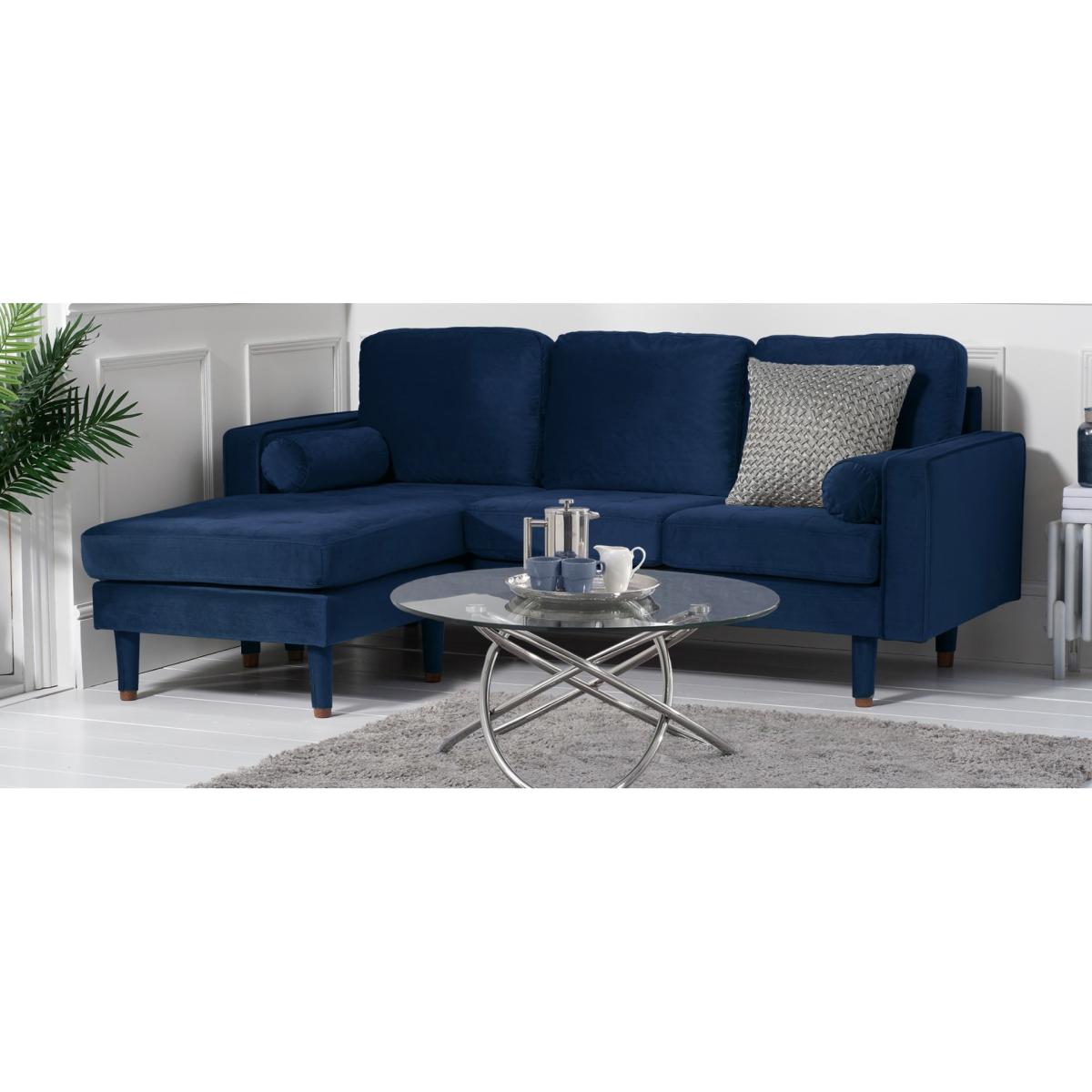 The Luca Blue Velvet 3 Seater Reversible Sofa features a simple, modern shape and luxe blue velvet. With a practical chaise section that can be swapped from left to right, the Luca features removable seat covers and velvet covered legs with dark wood tips. A comfortable addition to any home. Stylish and spacious reversible sofa. Luxurious blue velvet upholstery. Densely padded seat and back cushions for maximum comfort Removable seat covers for easy cleaning. Velvet covered legs with dark wood tips. Reversible chaise design. Change sofa from left to right facing with ease. Additional Measurements:Chaise Length: 106cm. Armrest Height: 54cm. Seat Depth:50cm Seat Width:177cm Armrest Width:12cm. Backrest Height:44cm Floor to Seat Height:39cm Leg Thickness:5cm Underside Clearance: 12cm