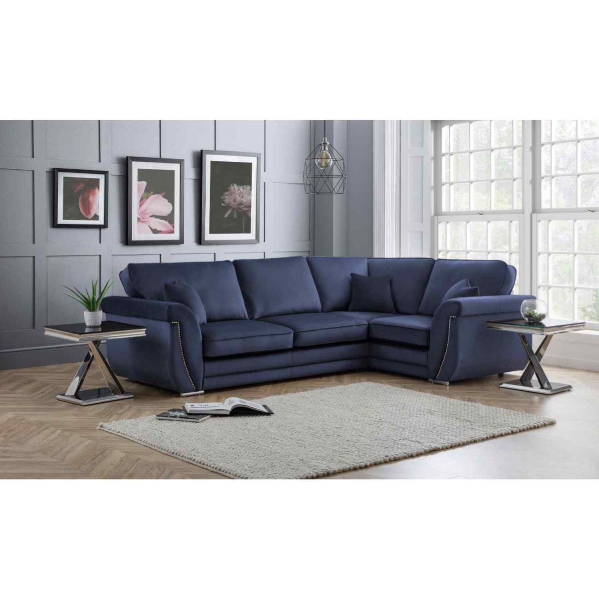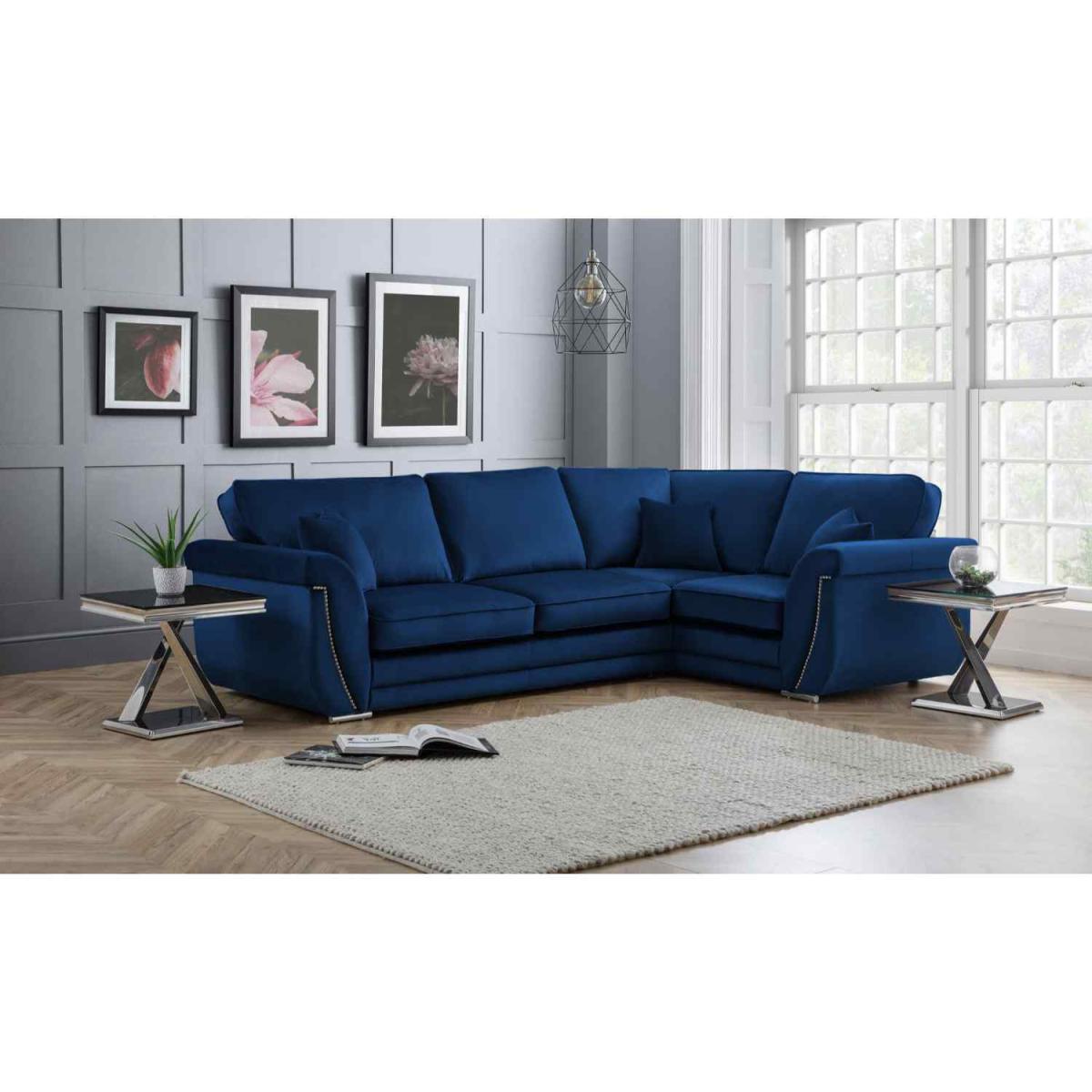 UK Made L Shape Corner Sofa, Premium plush velour fabric, this beautiful corner sofa includes a solid hardwood frame used and expert upholstery, this sofa is sure to be a crowd-pleaser! 3 Scatter cushions included and finished off with stunning beading around the sofa.