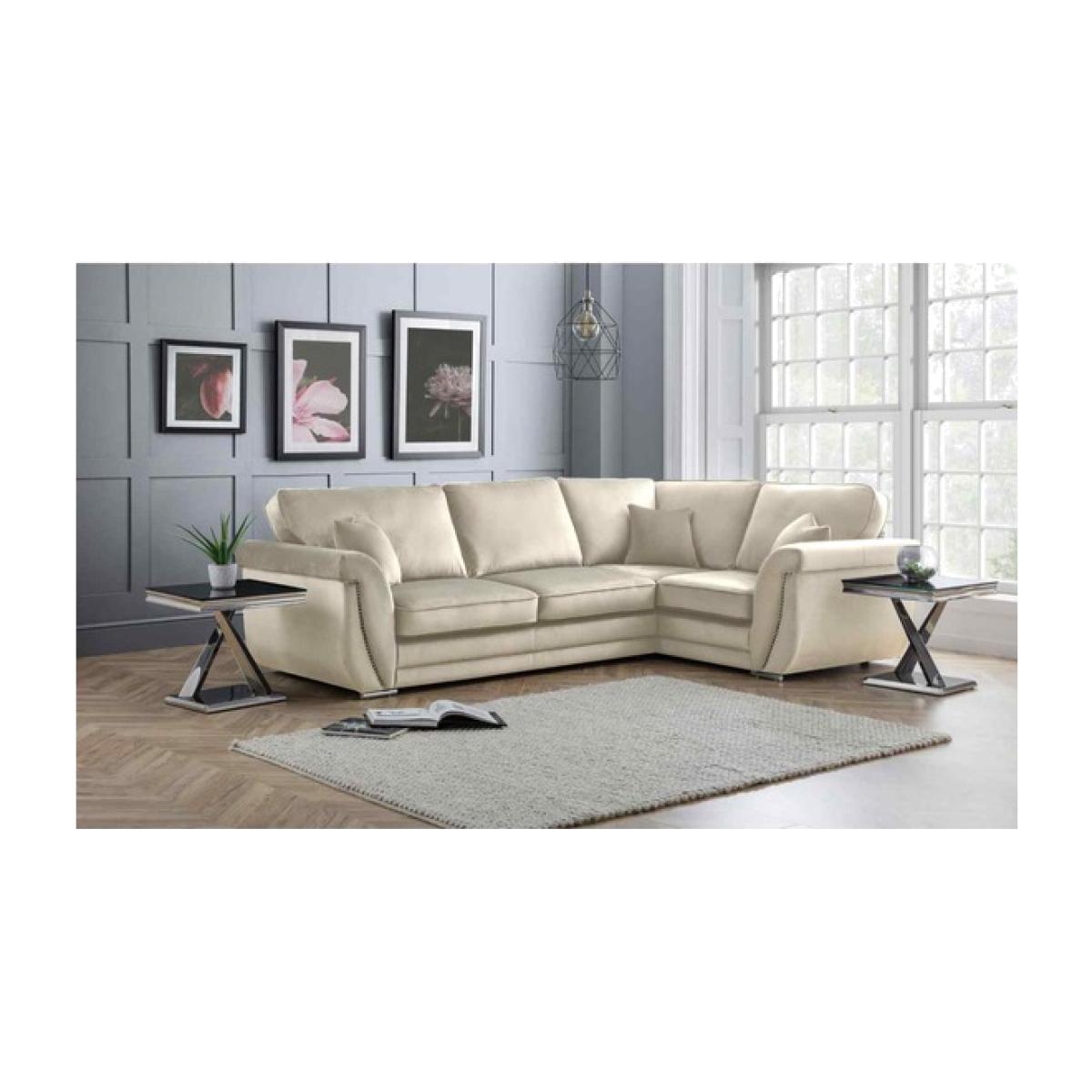 Luca Full Back L Shape Right Hand Corner Sofa Velvet Beading - White