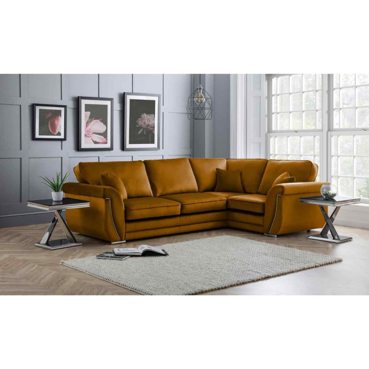 Luca Full Back L Shape Right Hand Corner Sofa Velvet Beading - Yellow
