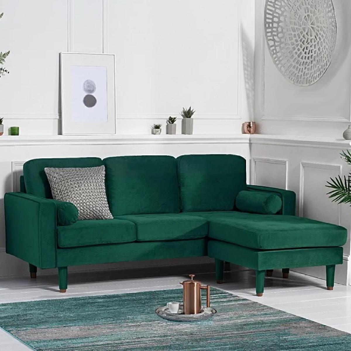 I love this green velvet corner sofa for its rich colour and versatile design, making it a standout piece for both contemporary and traditional interiors. The reversible chaise offers flexible arrangement options, ideal for adapting to different room layouts or occasional needs. It pairs beautifully with neutral tones for a classic look, or can be mixed with patterns and textures for more eclectic schemes. For styling tips, consider adding textured cushions and a cosy throw to enhance the plushness, while keeping the surrounding decor minimal to let the sofa be the focal point. Its deep green tone works particularly well in both warm, cosy spaces and more modern, minimalist settings, offering a sophisticated touch that’s easy to live with.