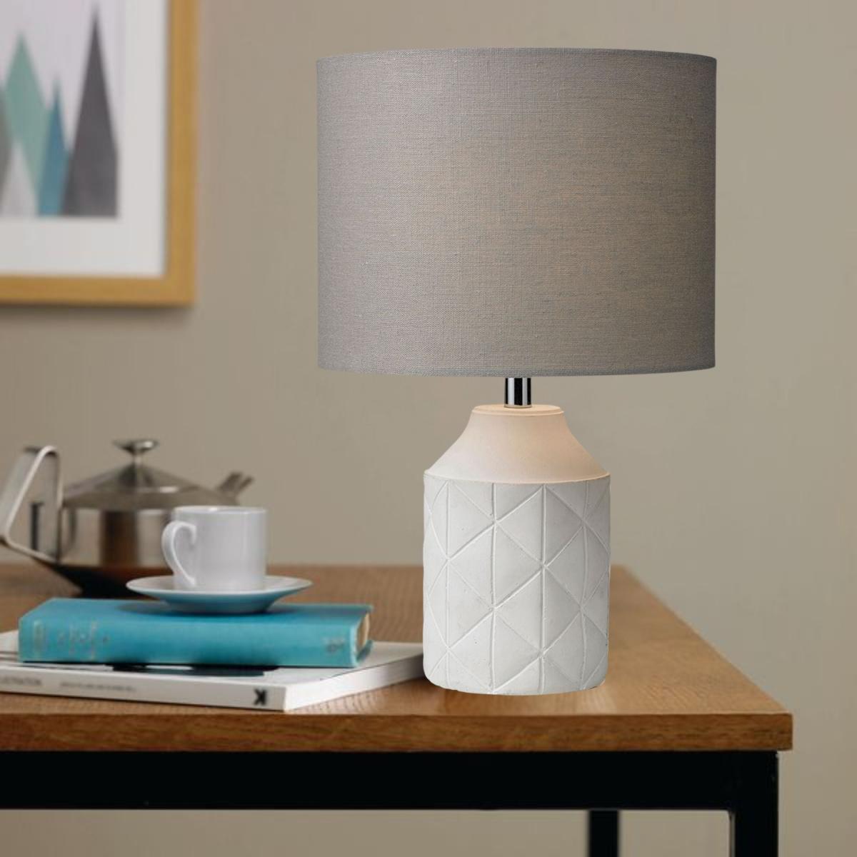 Luca 1-light ceramic table lamp, featuring an engraved white base with a grey drum shade. Bring understated elegance to your home with the Luca ceramic table lamp, a stylish lighting solution perfect for adding a soft glow to any room. Standing at 36cm tall, this lamp features an intricately engraved white ceramic base that combines texture and timeless charm. A complementary grey drum shade completes the design, diffusing light beautifully for a cosy, inviting ambiance. Ideal for bedside tables, living rooms or hallways, the Luca table lamp effortlessly blends with both contemporary and traditional decor, making it a versatile choice for illuminating your space. Luca 1-light ceramic table lamp, featuring an engraved white base with a grey drum shade. Bring understated elegance to your home with the Luca ceramic table lamp, a stylish lighting solution perfect for adding a soft glow to any room. Standing at 36cm tall, this lamp features an intricately engraved white ceramic base that combines texture and timeless charm. A complementary grey drum shade completes the design, diffusing light beautifully for a cosy, inviting ambiance. Ideal for bedside tables, living rooms or hallways, the Luca table lamp effortlessly blends with both contemporary and traditional decor, making it a versatile choice for illuminating your space.
