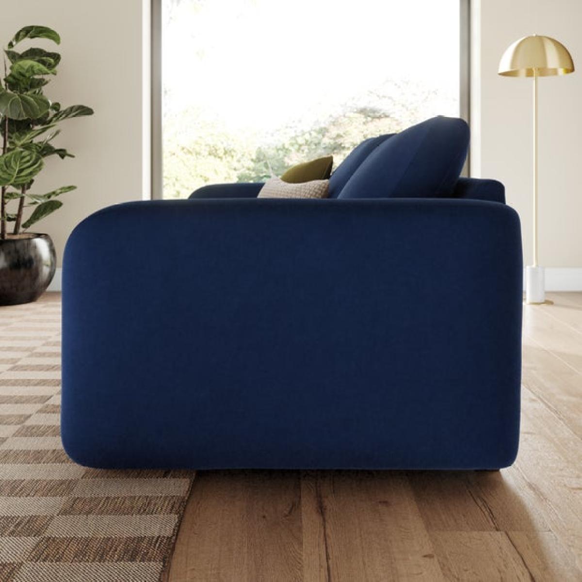 I love this sofa for its versatile style and soft matte velvet finish, which adds a touch of understated luxury to any living space. It suits contemporary and mid-century interiors well, especially in colours like navy that create a cosy yet sophisticated feel. When styling, consider pairing it with textured cushions in complementary shades to add depth, and keep accessories minimal for a clean look. Since it's a three-seater, it works brilliantly in open-plan living rooms or family spaces where comfort and spaciousness are key. To ensure longevity, opt for low-maintenance fabrics and avoid placing it directly in harsh sunlight to preserve that beautiful soft velvet effect.