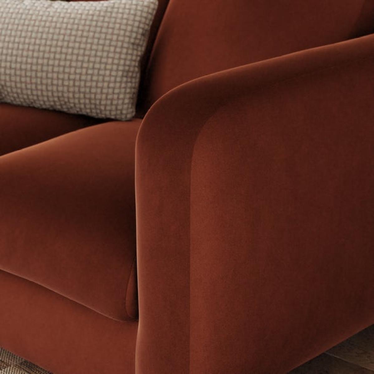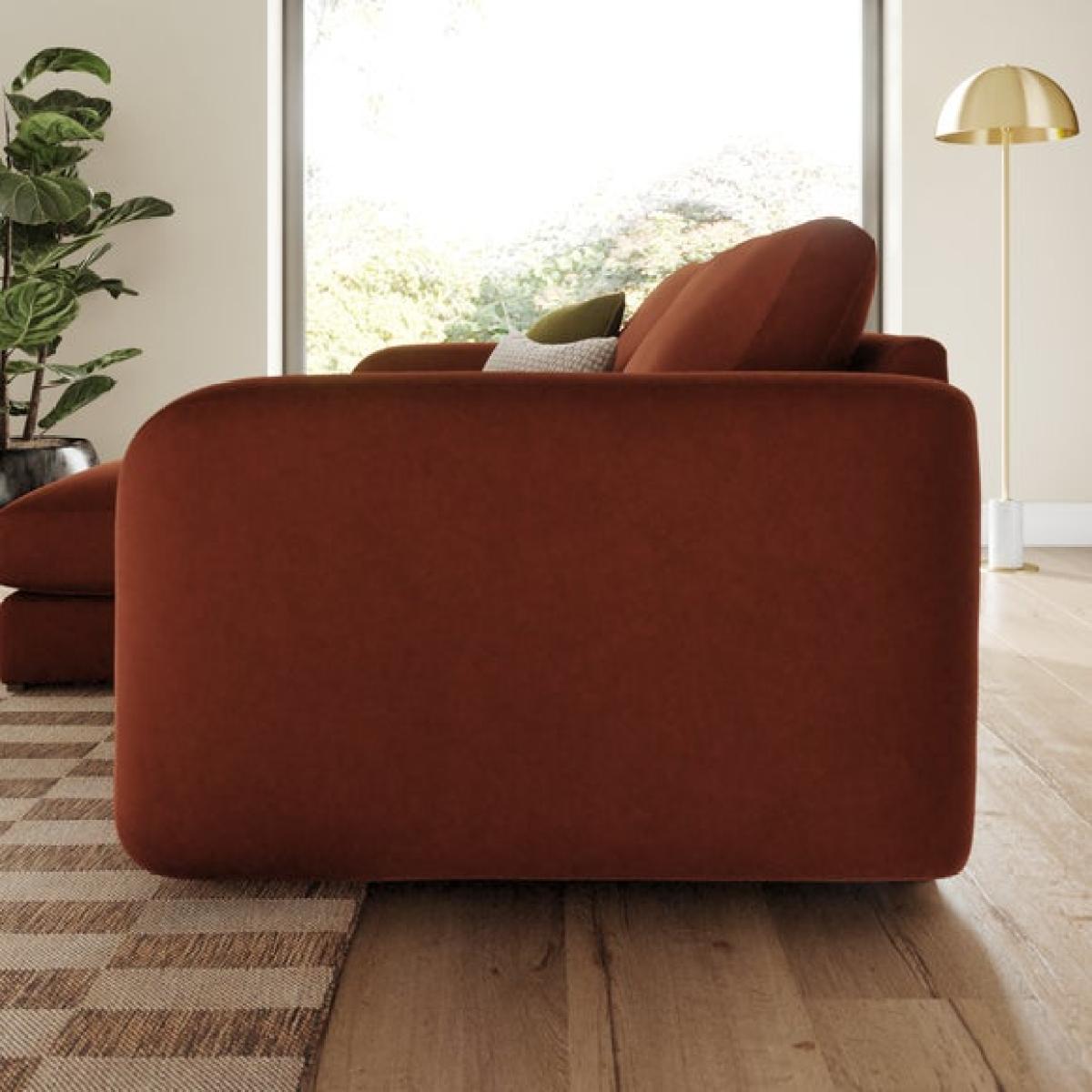 * Contemporary sofa * Foam and Fibre filled cushions * Deep arms * Wooden legs * Tested up to 110kg Versatile and luxurious, this reversible corner chaise sofa is upholstered in matte soft velvet that brings a refined, tactile finish to your space. The fabric’s smooth texture and subtle sheen add a touch of elegance, while the clean lines and softened curves create a relaxed, contemporary silhouette. The chaise can be positioned on either side to suit your layout, and the seating features a recon foam core, soft foam topper, and fibre wrap supported by serpentine springs for exceptional comfort.