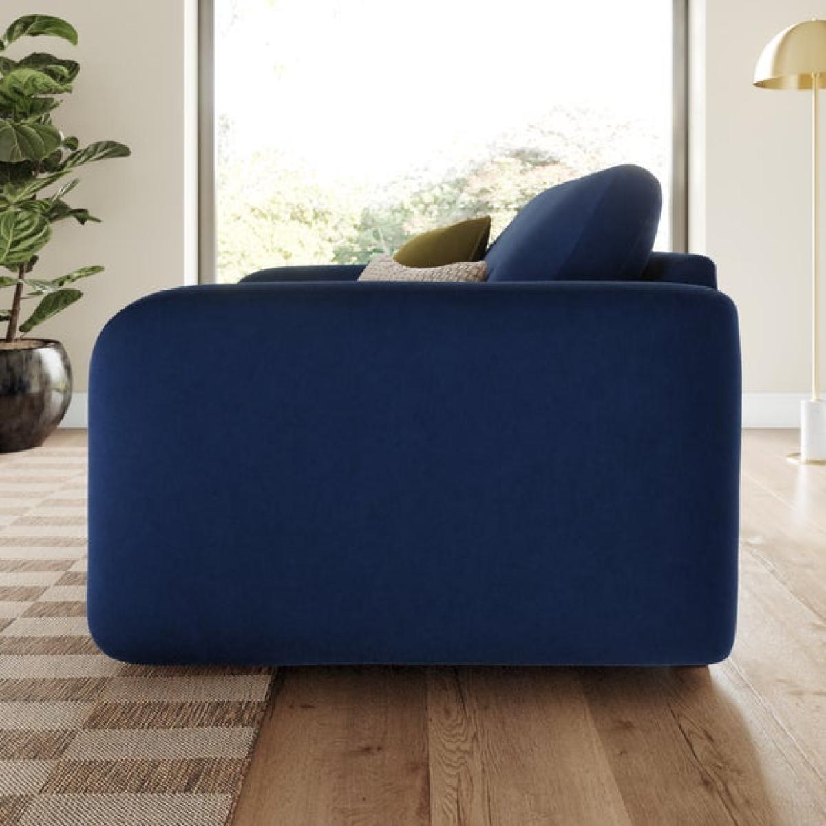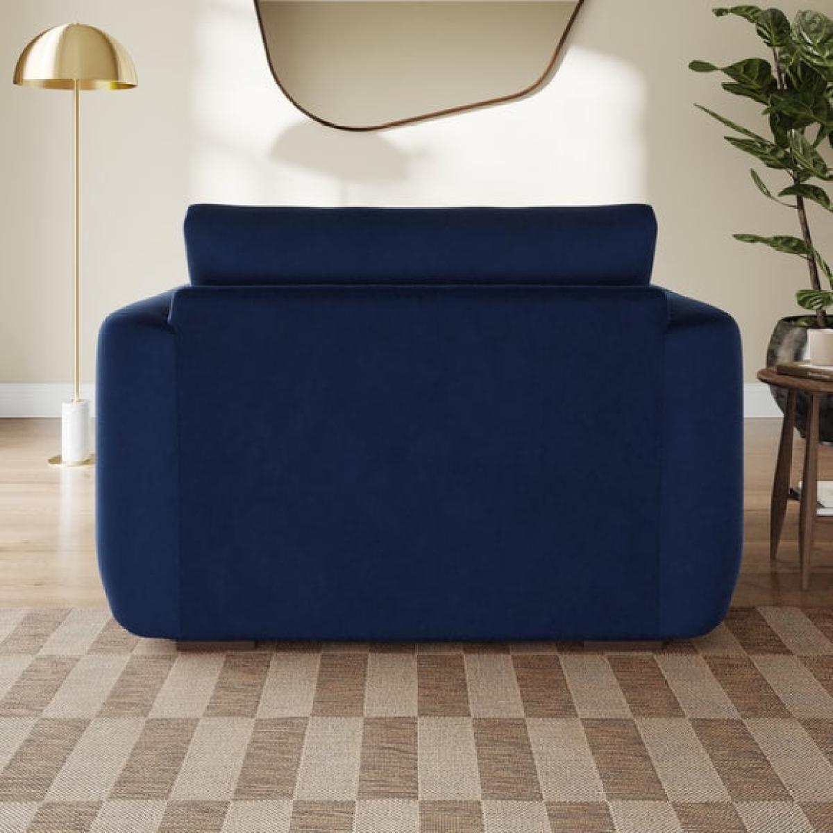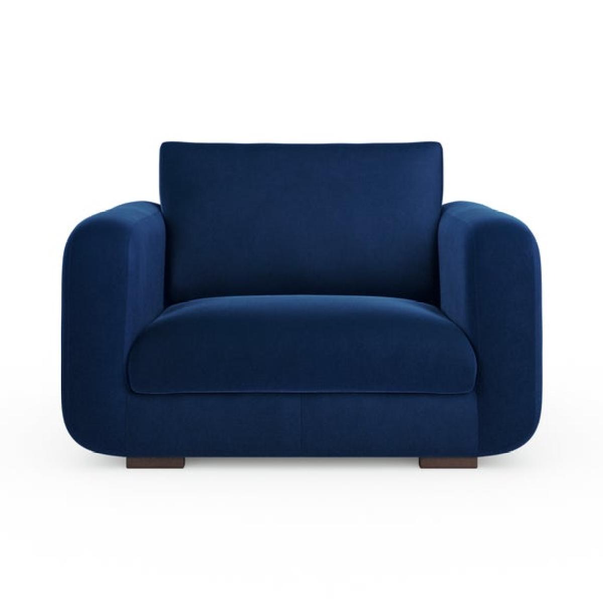 I love this snuggle chair for its inviting softness and contemporary shape, making it perfect for cosy corners or small living spaces. Its matte soft velvet finish adds a touch of understated luxury, while the rounded, plush design creates a relaxed, welcoming vibe. It works well in modern, mid-century, or eclectic interiors thanks to its versatile silhouette and rich navy colour. For styling, consider pairing it with textured cushions in contrasting colours, such as muted greens or warm neutrals, to add visual interest. It’s ideal for spaces where comfort is key but without sacrificing style, making it a great option for reading nooks, compact living rooms, or even a bedroom corner.