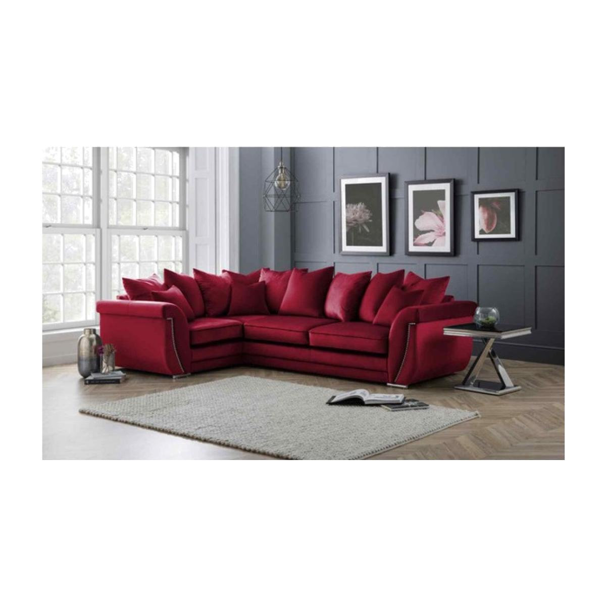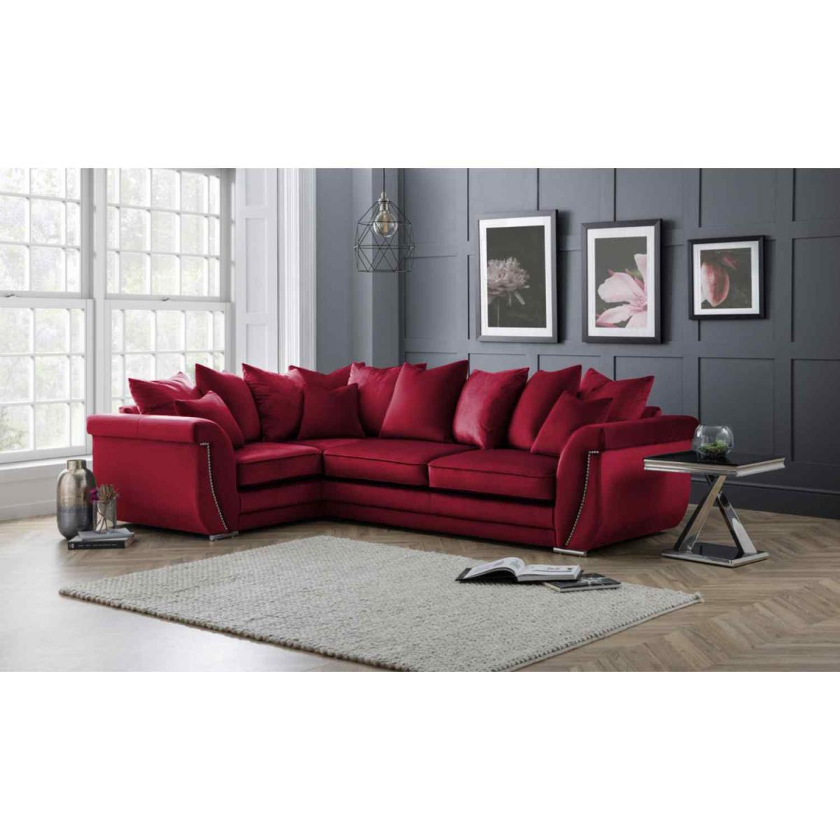 Luca Scatterback L Shape Left Hand Corner Sofa Velour Velvet Fabric with Beading - Red