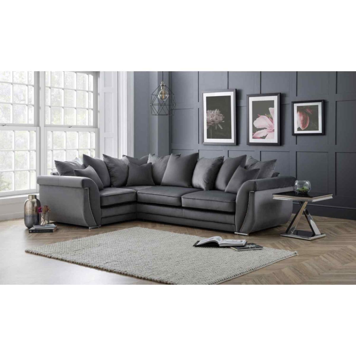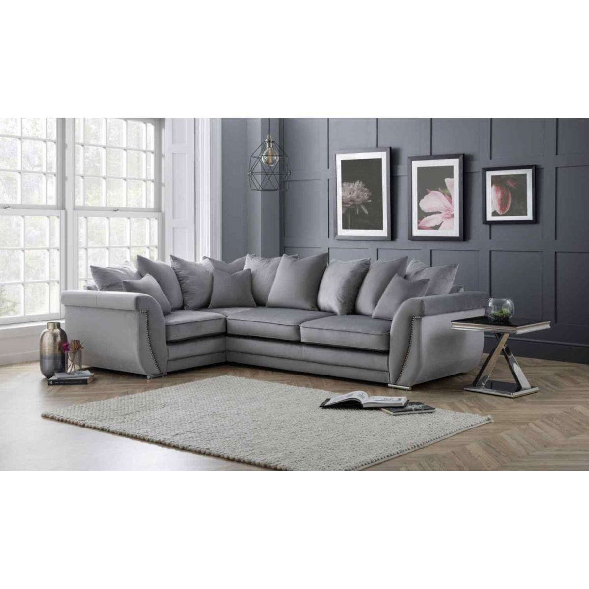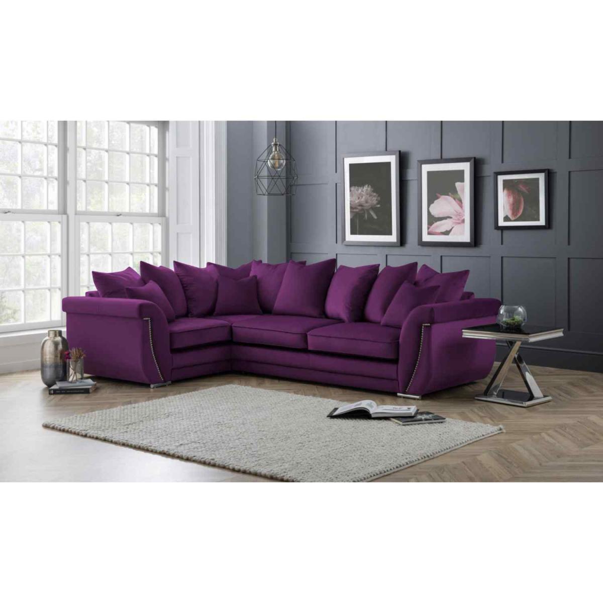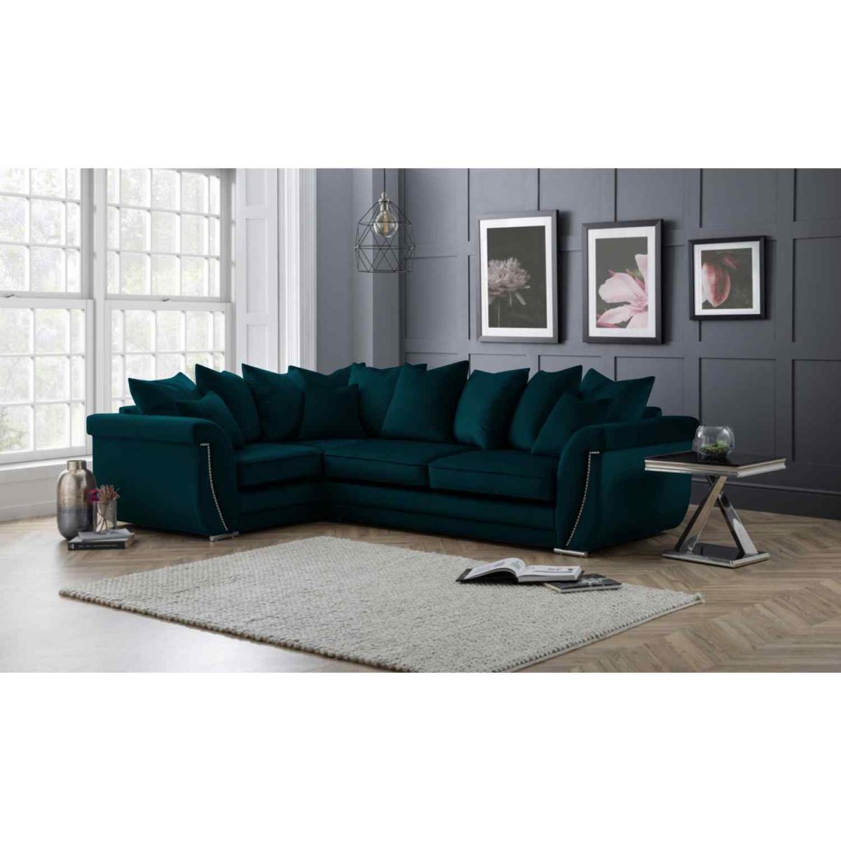 UK Made L Shape Corner Sofa, Premium plush velour fabric, this beautiful corner sofa includes a solid hardwood frame used and expert upholstery, this sofa is sure to be a crowd pleaser! 3 Scatter cushions included and finished off with stunning beading around the sofa.