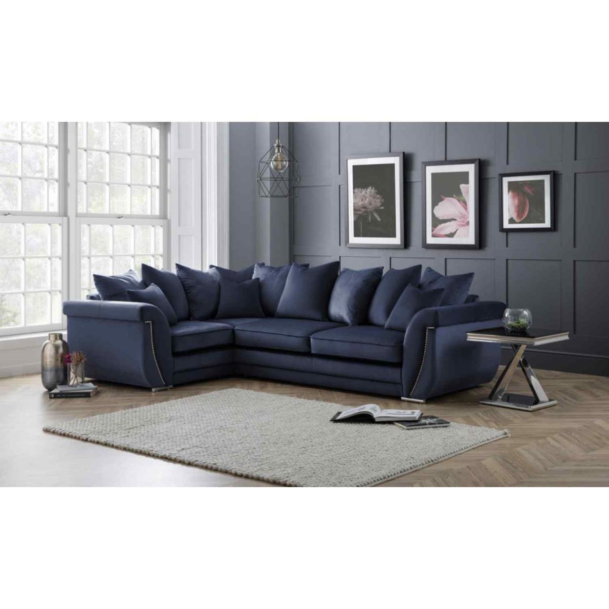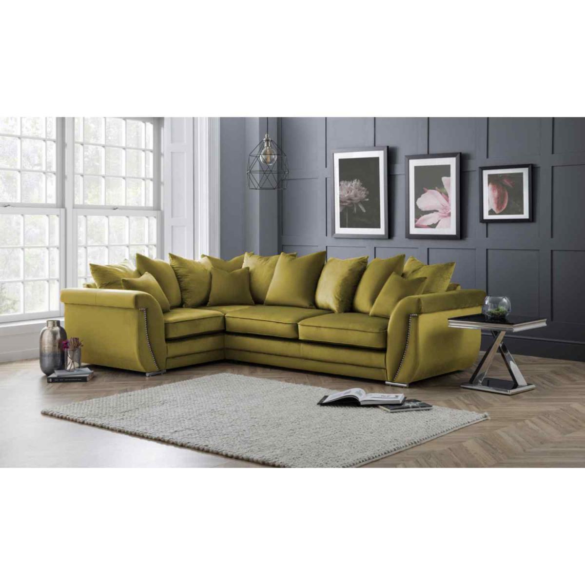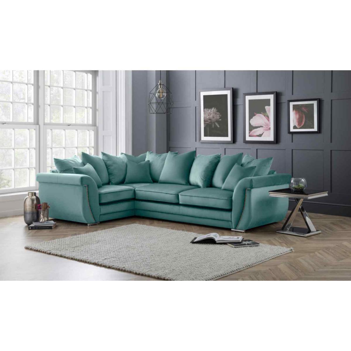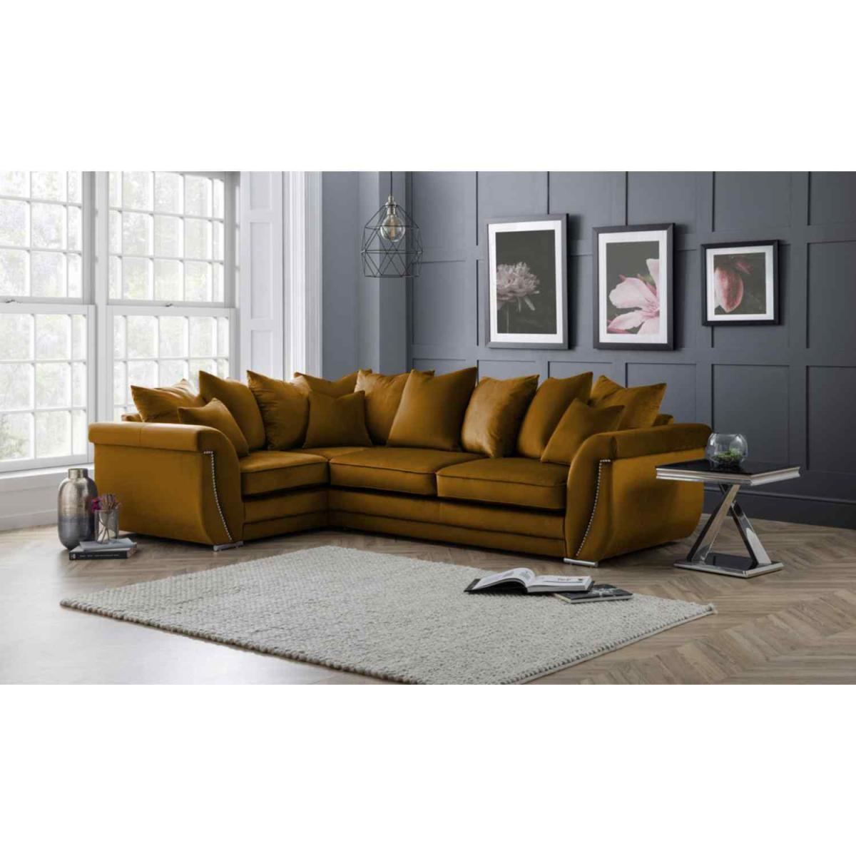 UK Made L Shape Corner Sofa, Premium plush velour fabric, this beautiful corner sofa includes a solid hardwood frame used and expert upholstery, this sofa is sure to be a crowd pleaser! 3 Scatter cushions included and finished off with stunning beading around the sofa.