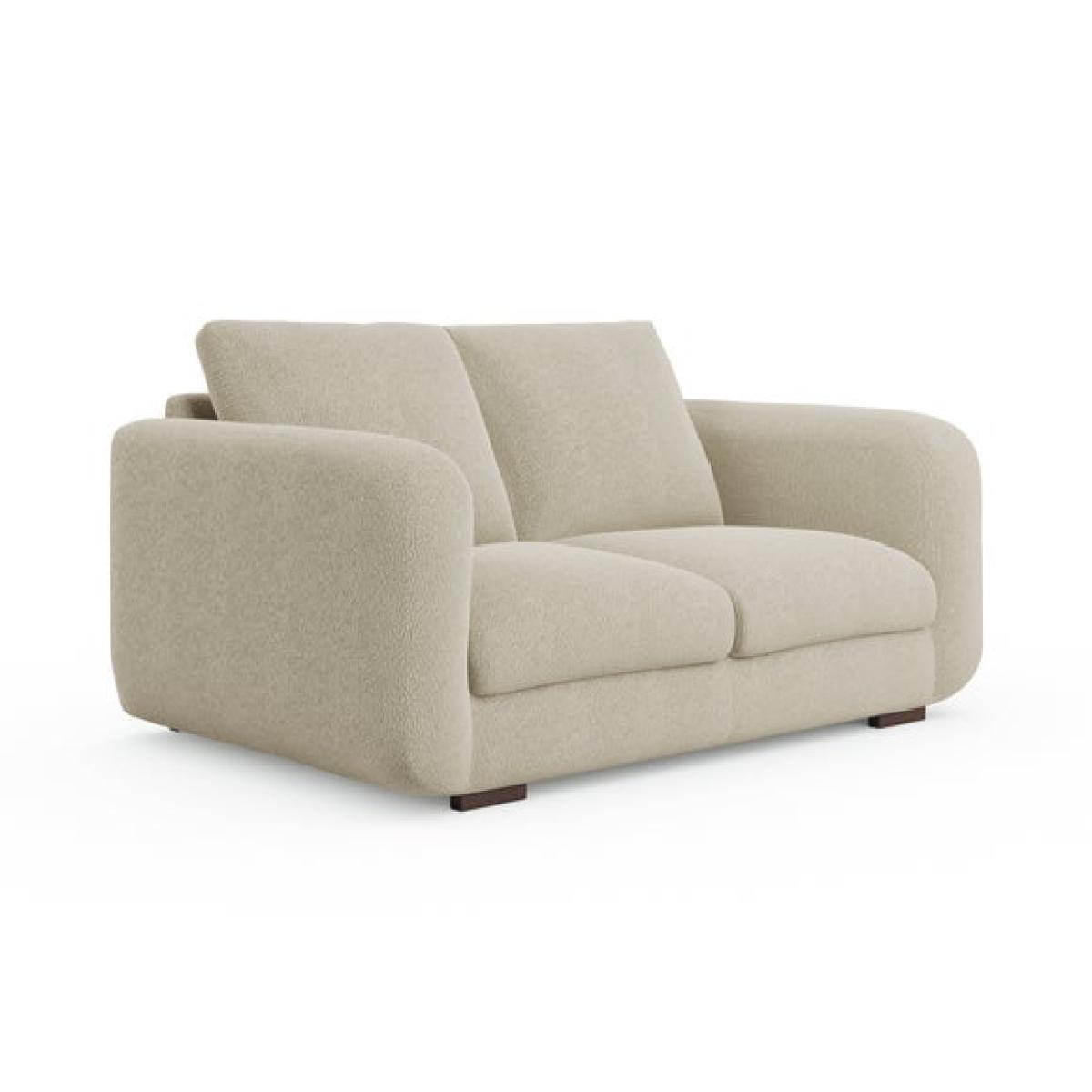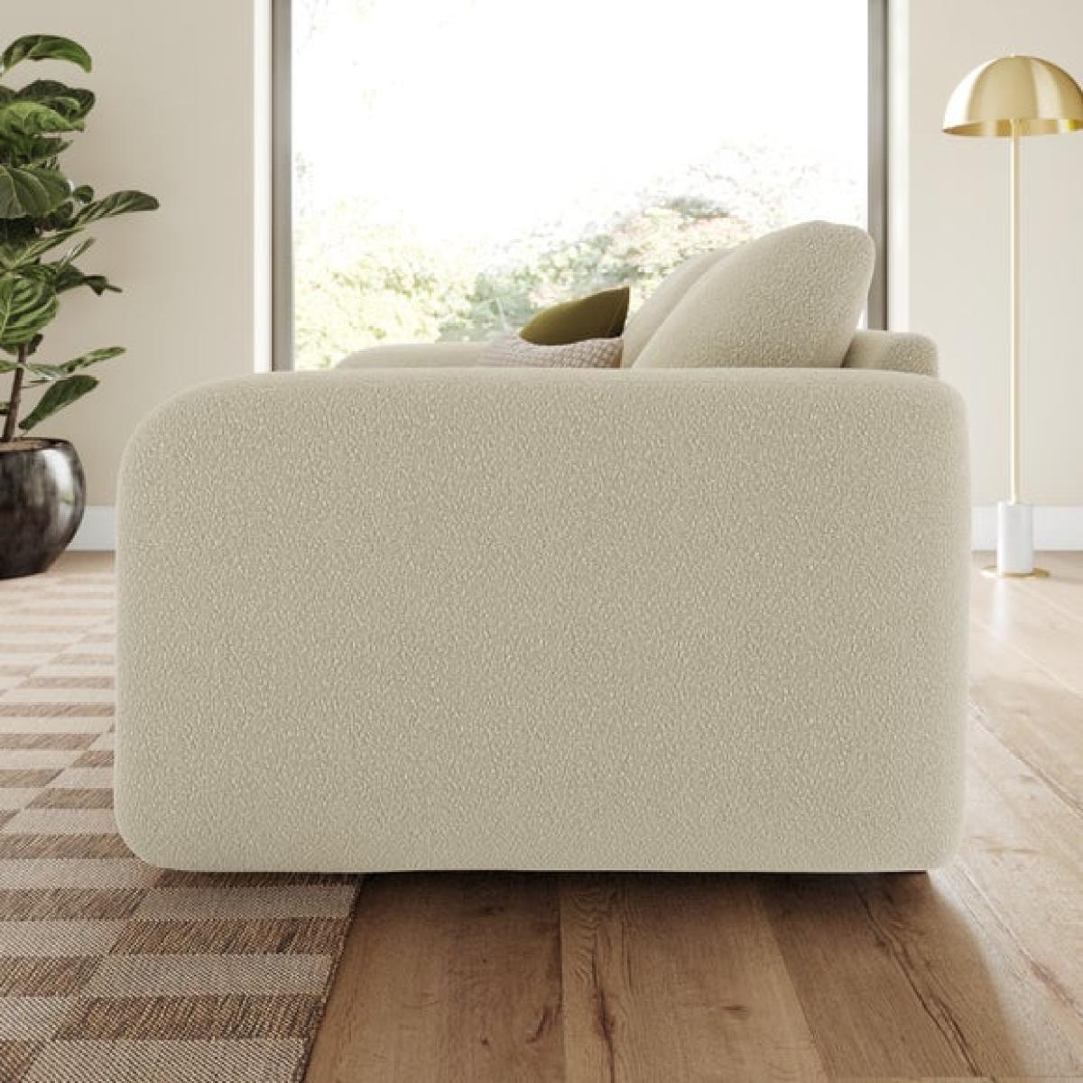 * Contemporary sofa * Foam and Fibre filled cushions * Deep arms * Wooden legs * Tested up to 110kg This 2 seater sofa is beautifully textured, upholstered in tonal boucle, the fabric offers a rich, tactile surface with a soft, nubby texture that invites you to sink in and stay a while. The low, deep arms and softened curves create a clean, contemporary silhouette, while the plain sewn seams keep the look effortlessly refined. Inside, serpentine seat springs and a recon foam core topped with soft foam and fibre wrap deliver a level of comfort that’s both supportive and indulgent.