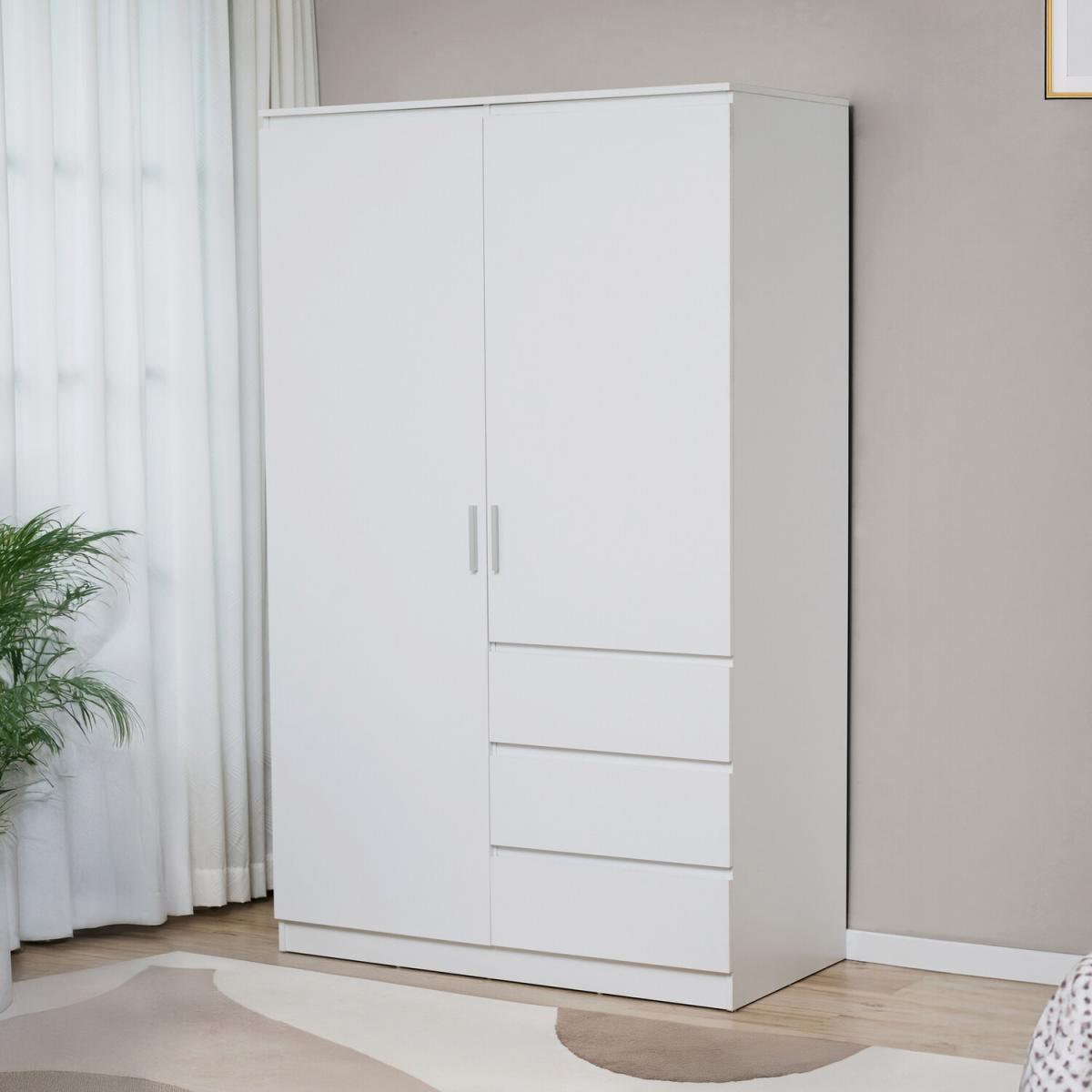 Transform your bedroom into a chic sanctuary with the Luca Wardrobe. This stylish piece of furniture combines functionality and modern design, boasting a sleek handle-free exterior that enhances any decor. Crafted from durable particle board with a smooth paper finish, it features two shelves and a sturdy metal hanging rail, offering ample space to keep your clothes organised and neatly displayed. The three added drawers provide enough space to hold smaller items, such as jewellery, watches, and other accessories, keeping them well-organised. With its contemporary appeal and efficient storage solutions, the Luca Wardrobe is a perfect addition for anyone looking to elevate their living space.