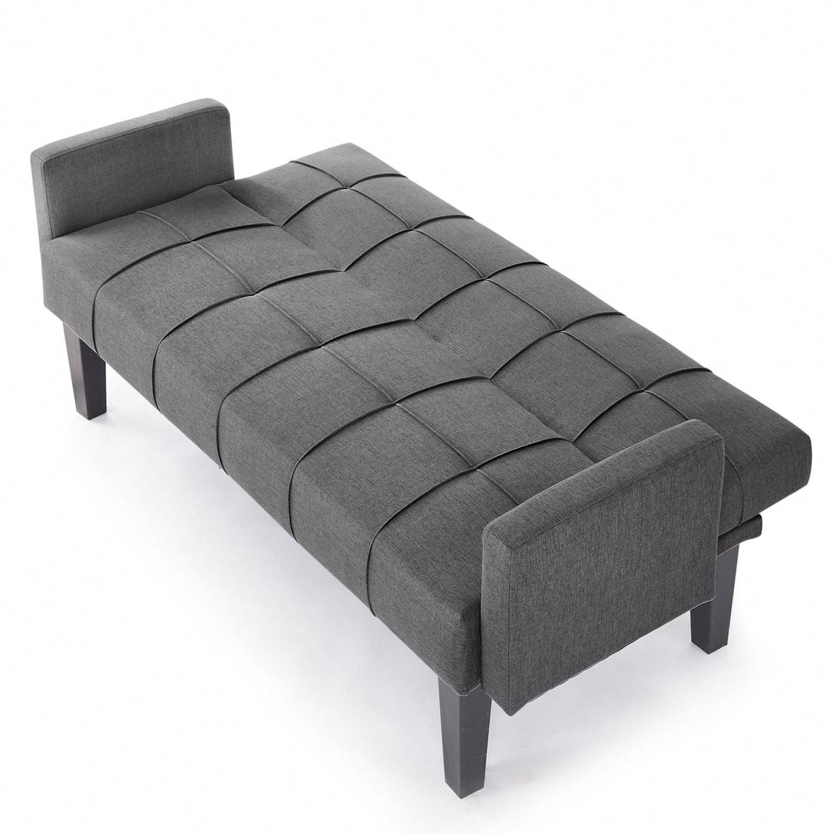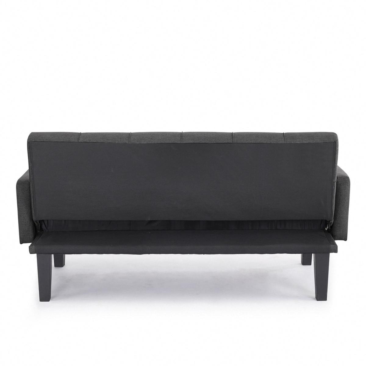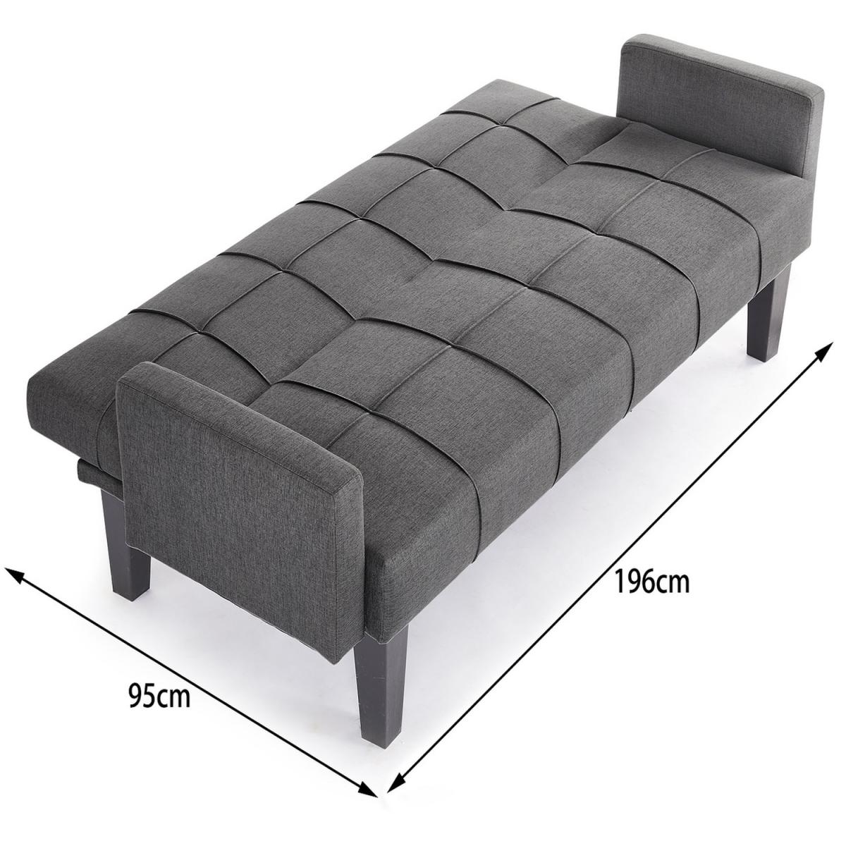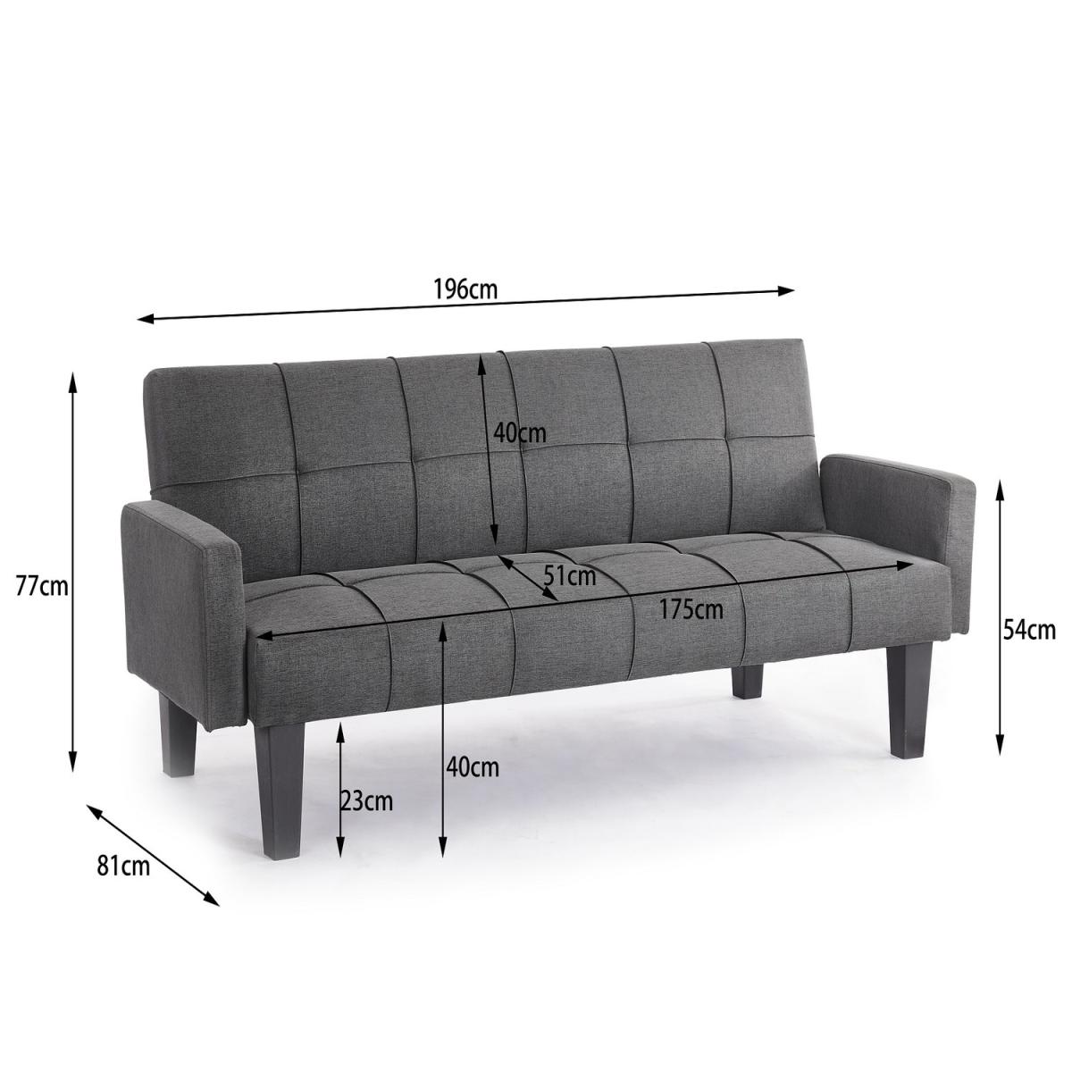 Introducing LUCAS, a 3-seater sofa bed, available in Charcoal or Grey Woven Fabric. The LUCAS sofa bed is a statement piece, bold in stature with piped tufting detail over the seat and backrest, elevating its sleek silhouette with subtle but impactful elegance. The clean lines of the body of the sofa are carried through to the boxy, square track armrests right to the black tapered block legs on which it stands. Perfect as a sofa or even an understated yet inviting daybed. For any multifunctional space, Convertible design - this sofa bed has a simple clic-clac mechanism that allows it to swiftly and simply transform from a sofa to a recliner to a bed, making it ideal for overnight guests. This sofa bed cannot be freely positioned in your room. The back of this sofa bed is upholstered in a black woven fabric that does not match the colour of the sofa bed fabric. Due to differences in lighting and screen resolution on laptop, desktop, and mobile devices, some fabrics may appear somewhat different in person. To get the most out of your sofa bed we recommend gently cleaning with the upholstery attachment of your vacuum cleaner or using a soft hand brush once per week. You might need to screw the legs to the underside of some of our sofa beds since they don't all have pre-drilled holes. All of our sofa beds come with an easy-to-follow assembly guide. Delivered by our friendly couriers on a 2-man delivery service within 3-7 working days. The courier will deliver to a room of your choice.