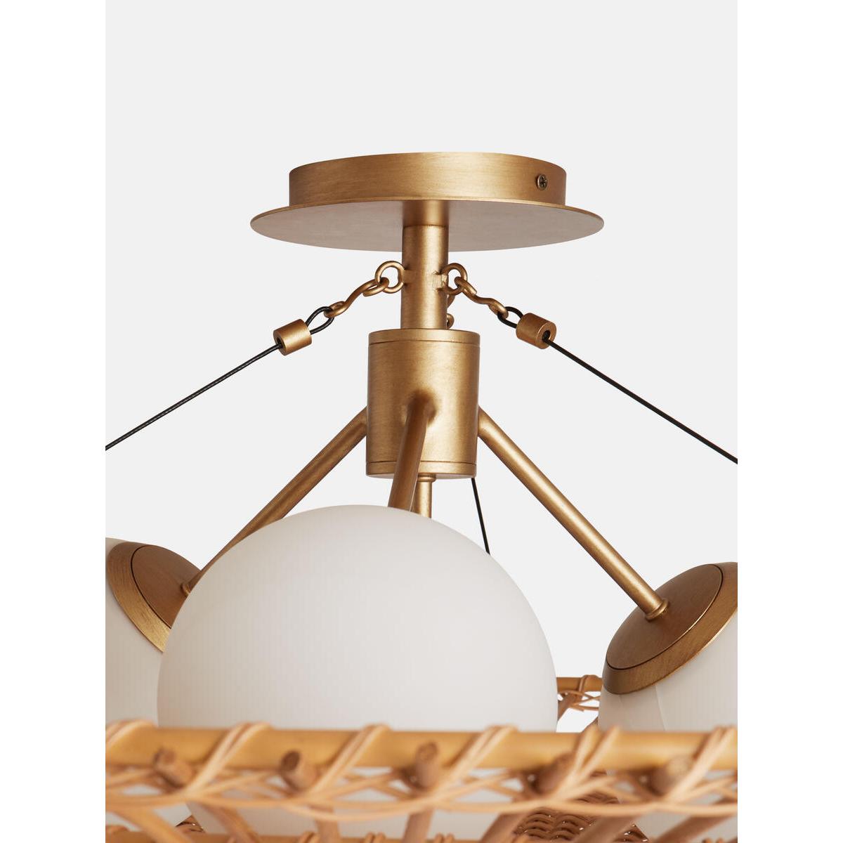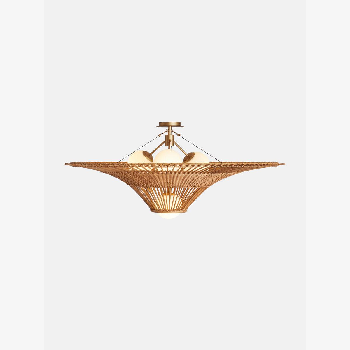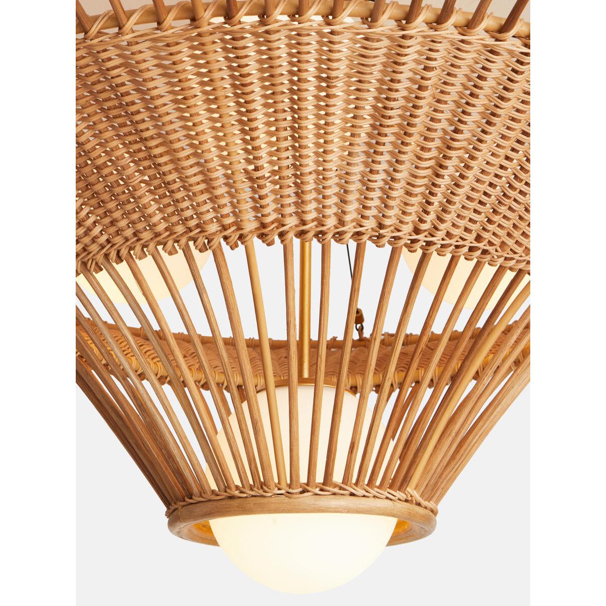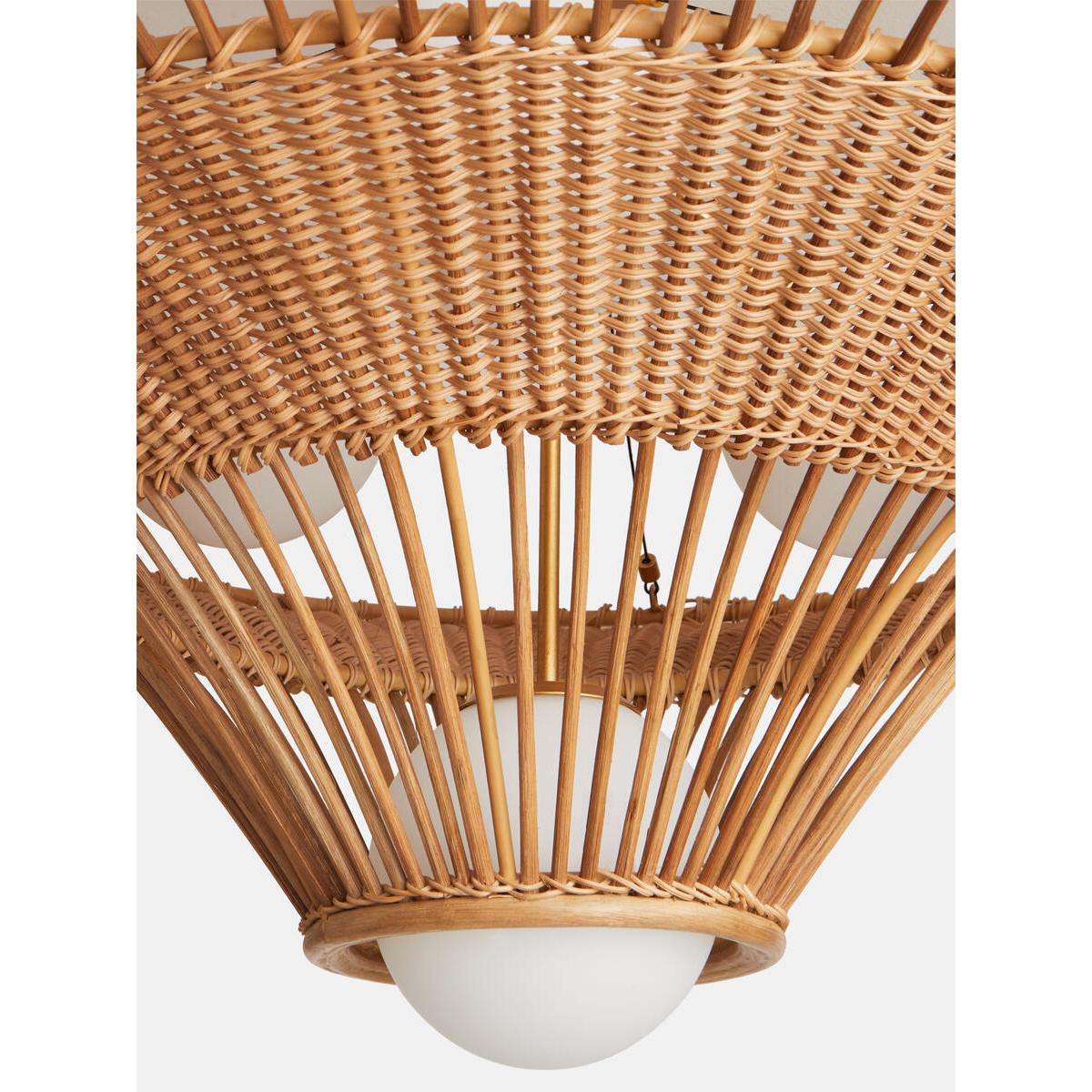 A celebration of Filipino artisan techniques, the Lucas chandelier is woven using natural cane ribs and rattan; typical materials commonly used in the Philippines. An opaque glass globe is enveloped in a circular rattan shade, which is a highly sustainable and progressive tropical wood that renews every five to seven years. Display this chandelier in a hallway, bedroom or dining area to recall the relaxing coastal interiors at Soho Roc House. Handwoven chandelier Natural rattan and cane ribs Circular shape Opaque glass globe Rattan is a highly sustainable material Requires four x E27 / max 60W bulbs Inspired by Soho Roc House