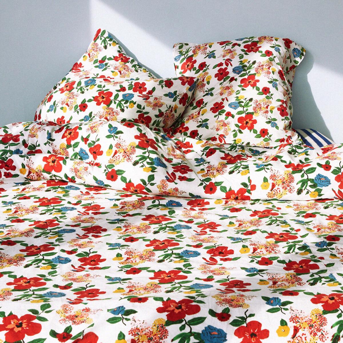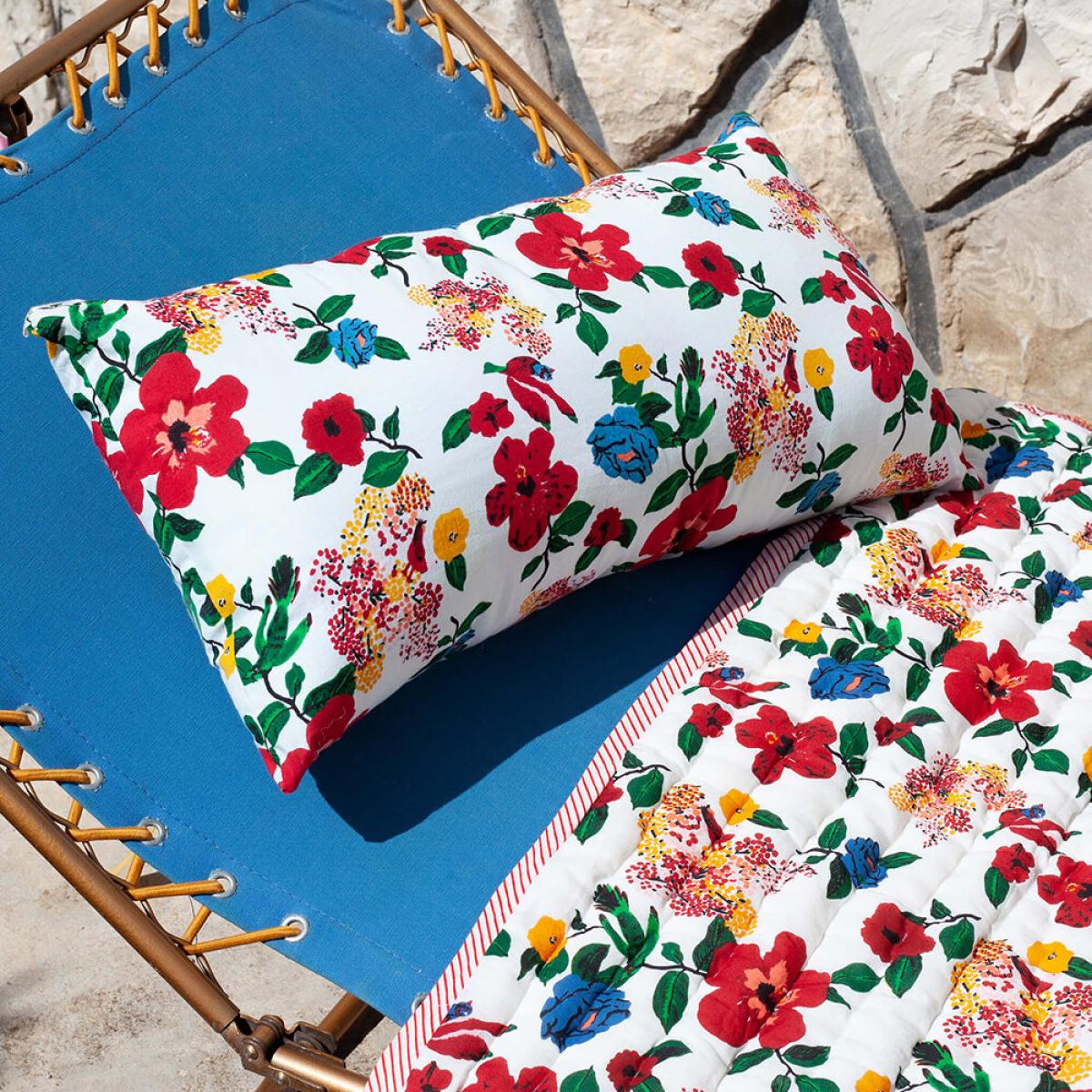 Transform your sleeping space with this cushion from Lucas Du Tertre. Consciously made in India by skilled artisans using ancestral techniques, it is adorned with a charming hand-illustrated floral design in vibrant tones. Pair with the matching duvet set to complete the look.
