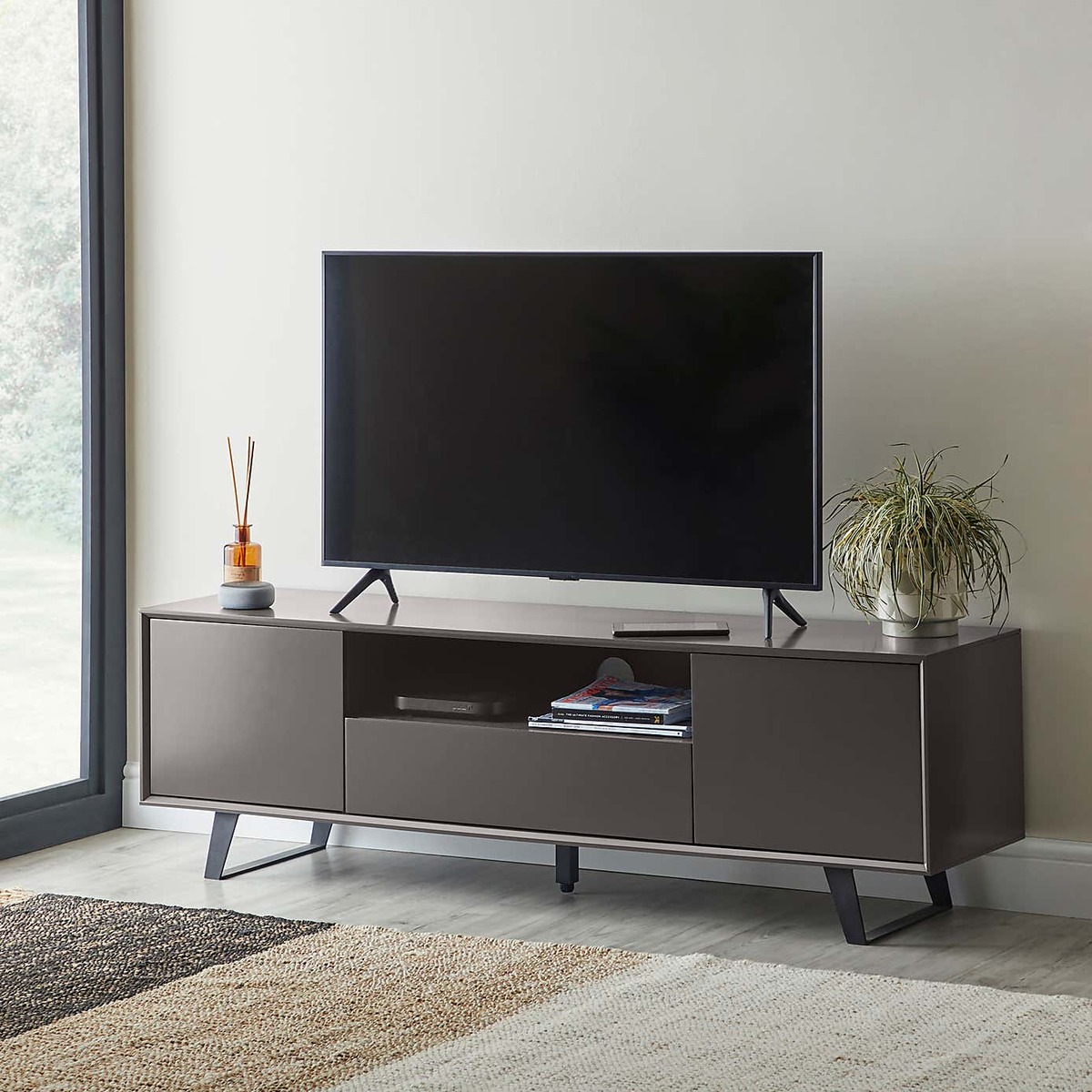 Dunelm Exclusive - Designed and Developed by Dunelm. With its understated, modern design, the Lucas Extra wide TV stand would make a stunning addition to your living space, offering enough space to support up to a 60" TV. The handleless design and trendy grey finish help give this piece a clean, minimalist look, perfect for any modern home decor, whilst still remaining highly practical. This unit features a single wide open shelf as well as a large drawer and two spacious cupboards, each with cable access ensuring you have plenty of space for all your media devices and consoles. Please use the wall attachments providing to prevent overturning. Care instructions: Avoid prolonged exposure to direct sunlight. Wipe up spills immediately with a damp cloth and avoid common hazards such as harsh solvents or abrasives. To view the assembly instructions.