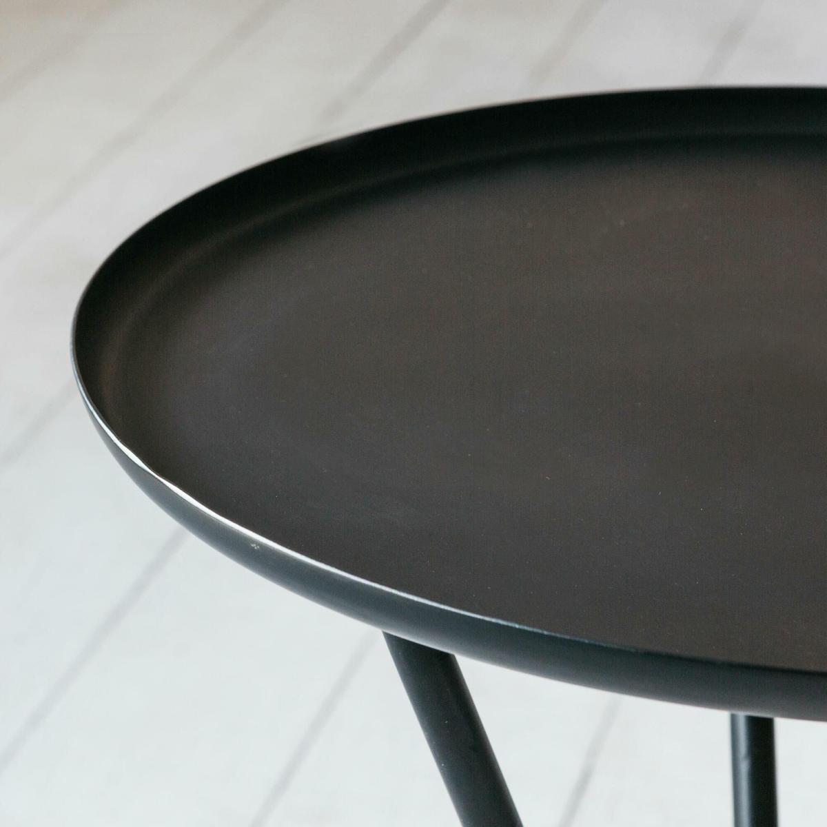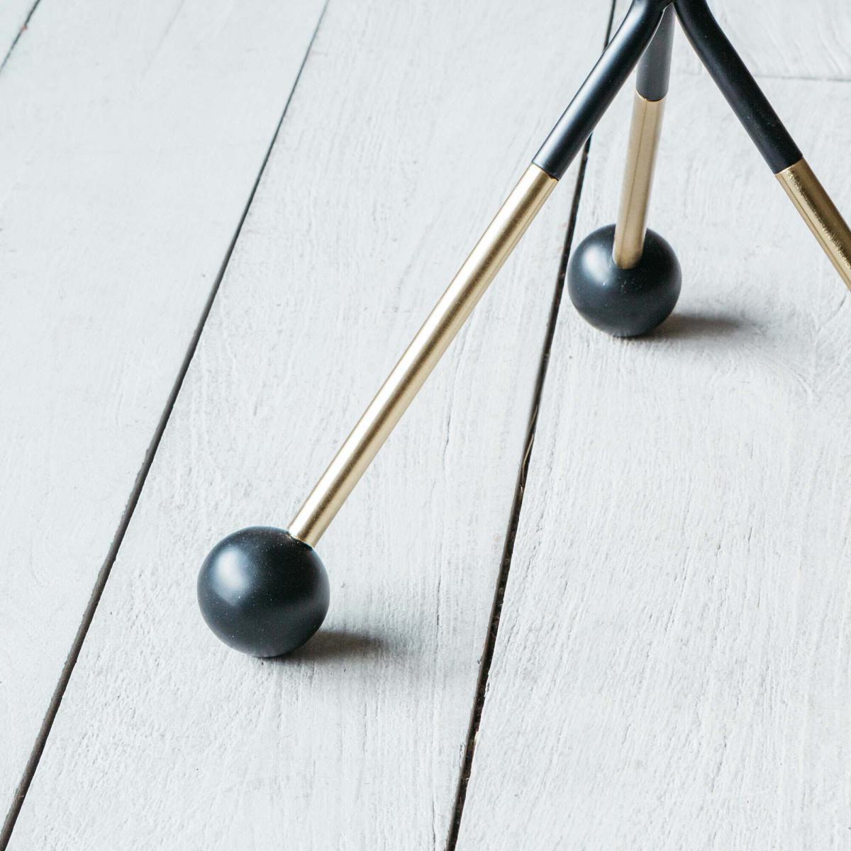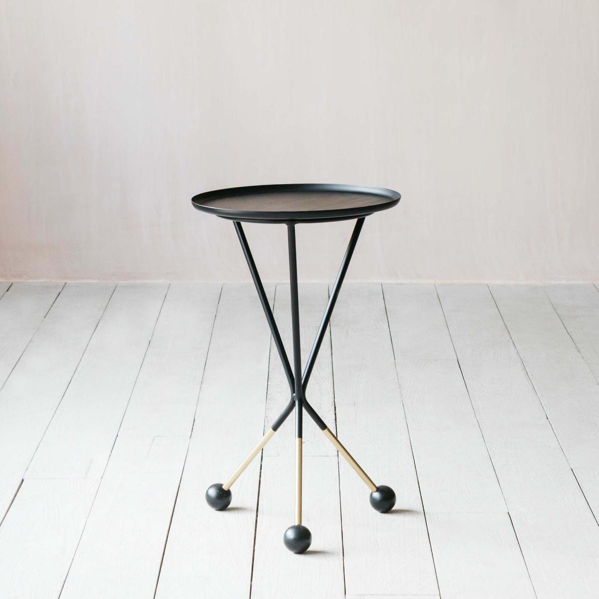 A dash of modern design complements the fifties-inspired shape of this side table, crafted from iron with round ball feet and gold banding around the table legs.