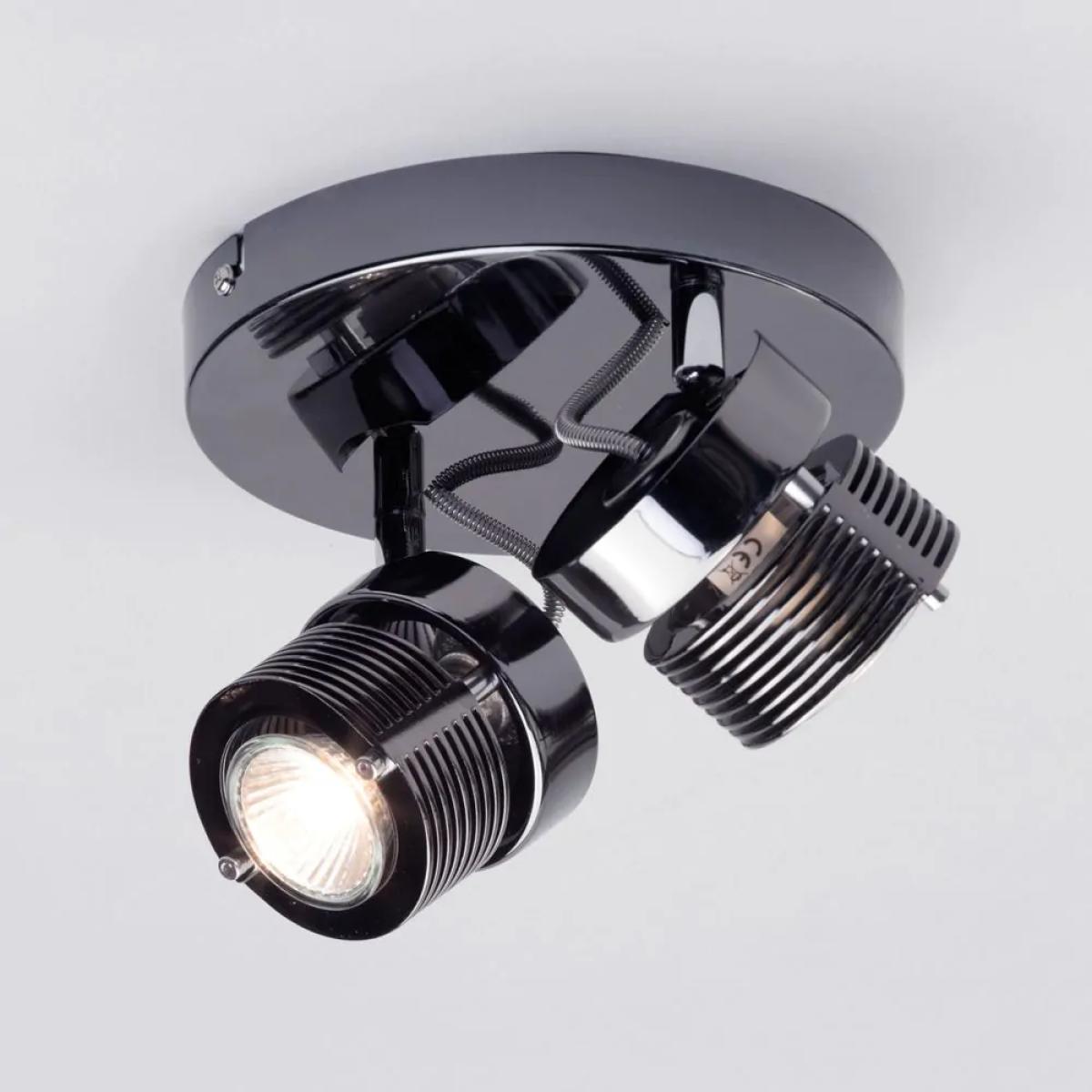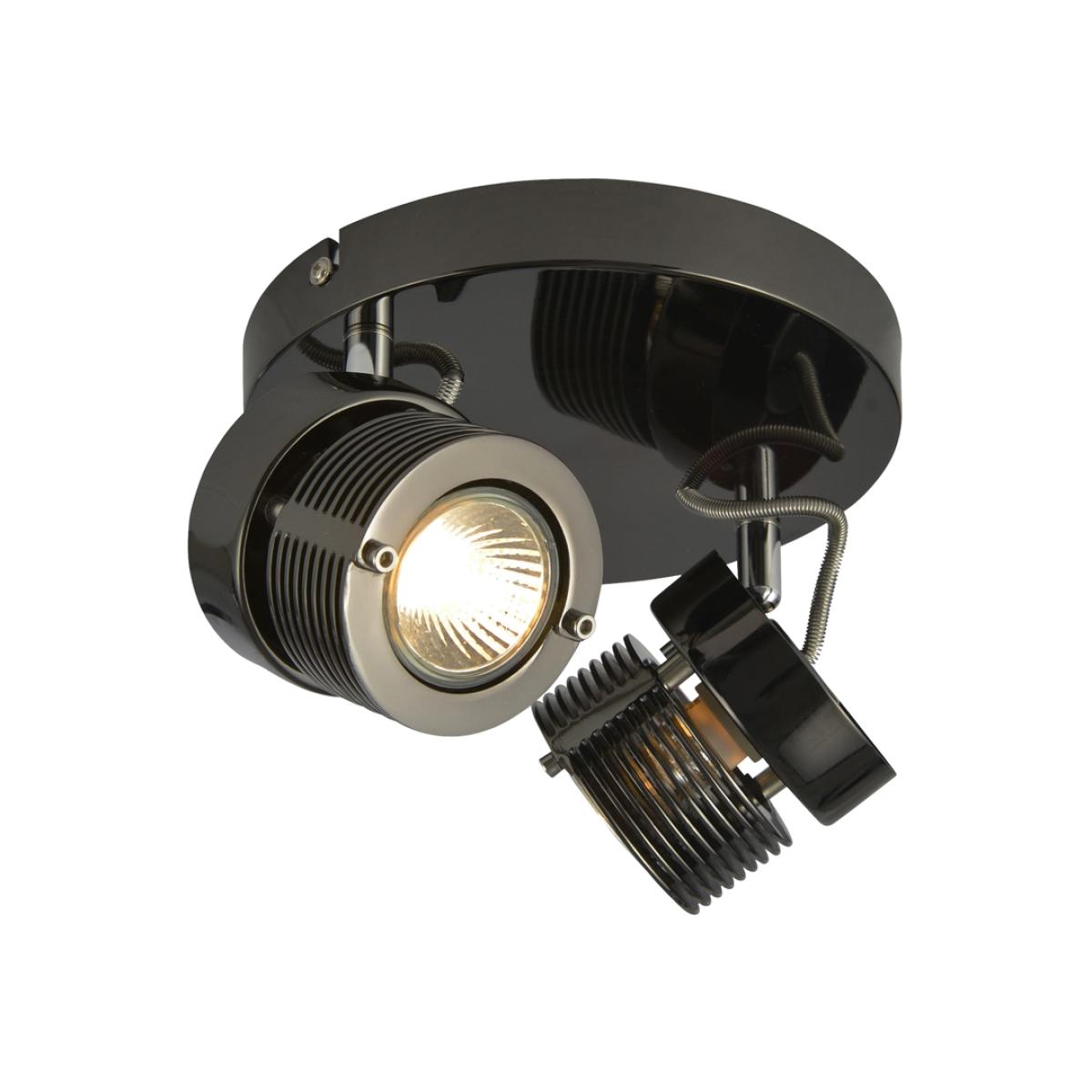 Make the addition of stylish urban lighting to your interior design with the Lucas Twin Ceiling Spotlight Plate. This modern ceiling light has a stylish black chrome finish and features an industrial ribbed design, giving a sleek, modern appearance to your lighting arrangements. It also features 2 fully adjustable spotlight heads, allowing for directional and focused task lighting wherever you need it most.