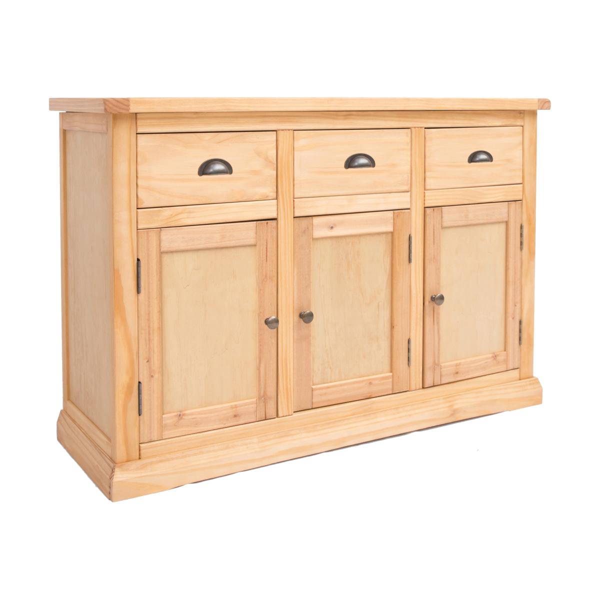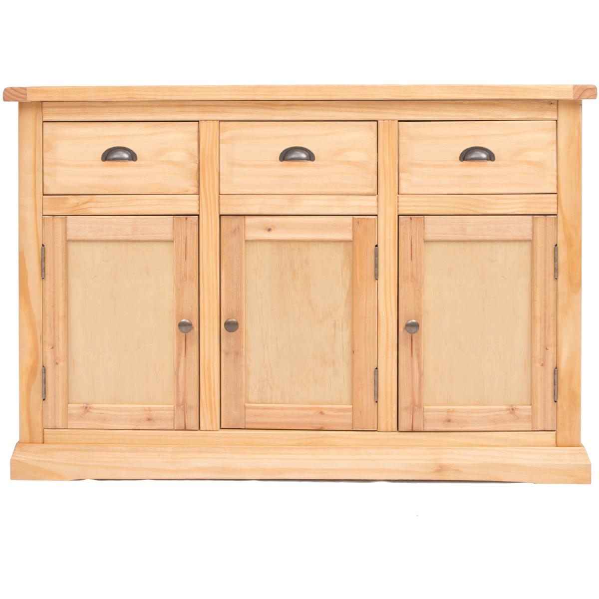 Our Lucca collection has a simple but pleasing design and is produced by our skilled craftsmen to the highest standards using responsibly sourced wood and veneers. All cabinets are made using a combination of solid pine wood and veneers and are carefully hand waxed on an antique finish giving it a great look. This large 3 door 3 drawer sideboard will look at home in your dining room or lounge. The three doors conceal a large cupboard space for storing crockery, bottles or glassware and there is also a shelf to further organise your contents. Above this there are three drawers for storing your cutlery, napkins, coasters or even paperwork you need to hand. These attributes combined with a simple construction for easy assembly makes it a great value product to be taken home today.