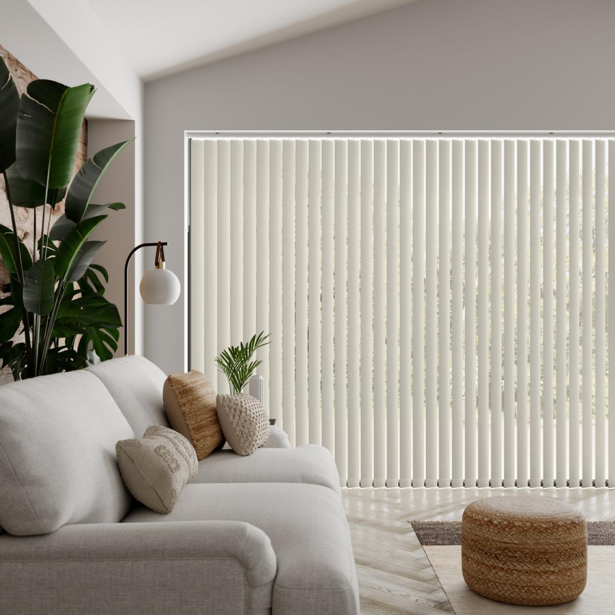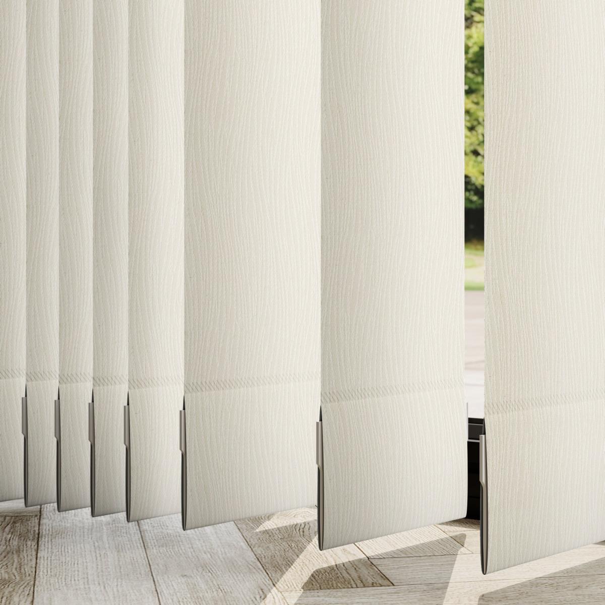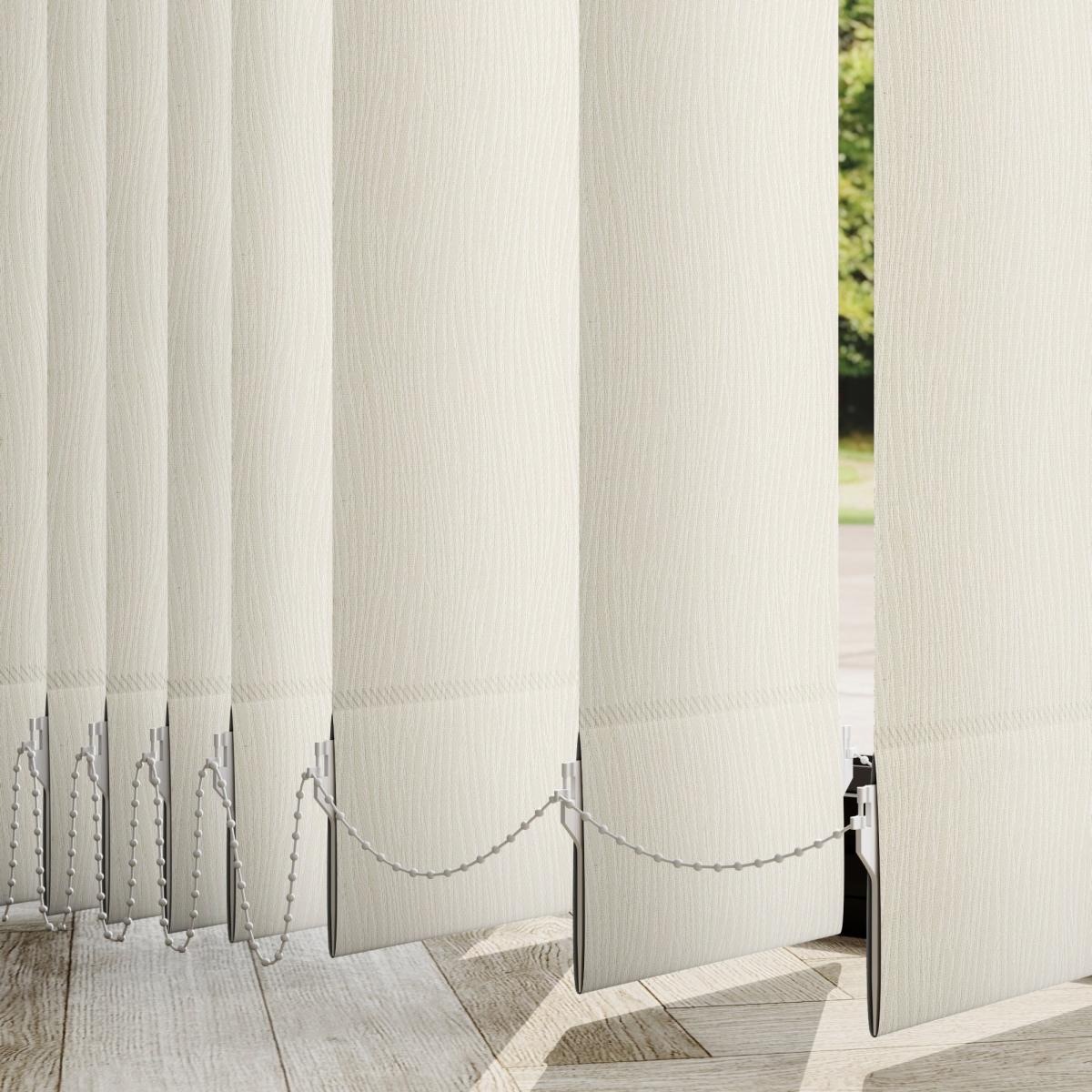 * Choose your fabric and colour * Select your fitting type, bracket type, and control type * Pick your stack side and bottom weight Featuring a eastern-inspired look, the Lucca is a great addition to any home and pairs beautifully with other global-inspired pieces and décor. Please note that there will be batch differences so the sample may vary slightly to the product. There is also a 0.5mm tolerance for the product.**Choosing your fitting type:** * Inside the recess: this gives a tidy, snug finish as it's made to fit your window exactly. * Outside the recess: this option is great if you want more light to enter your room when the blinds are open. **Choosing your bracket type:** * Top fix: fitted into the top of the window recess or ceiling for a neat finish. Recommended for inside recess. * Face fix: fitted to the wall above the window, outside of the recess so your blind will cover the entire window. Recommended for outside recess. Available in standard 89mm or longer 127mm lengths. **Choosing your control type:** * Wand: the wand control pulls your blind to your desired position over your window and also tilts the blind slats with a twist. This option is perfect for homes with pets or children as it hangs out of reach. * Chain: the chain control allows you to pull the chain to tilt the blind slats and use the draw cord to open and close. The standard length of the chain is 1m. Please read our [Blinds Safety Guide](https://www.dunelm.com/info/buying-guides/blinds-safety-guidance) for more information on how to make your chain child and pet friendly. **Choosing your stack side:** * Left stack: your blind slats will stack to the left of your window or door. * Right stack: your blind slats will stack to the right of your window or door. * Split stack: your vertical blind will open from the centre, leaving a stack of blind slats on both the left and right of your window or door. **Choosing your bottom weight:** * Chained weights: each blind slat is weighted and includes a stabilising chain at the bottom which gives a classic feel and is great for drafty days. * Chainless weights: each blind slat is weighted at the bottom removing the need for a stabilising chain. This option is more pet and child friendly. **Need help deciding or measuring? **Book a free appointment with one of our consultants!