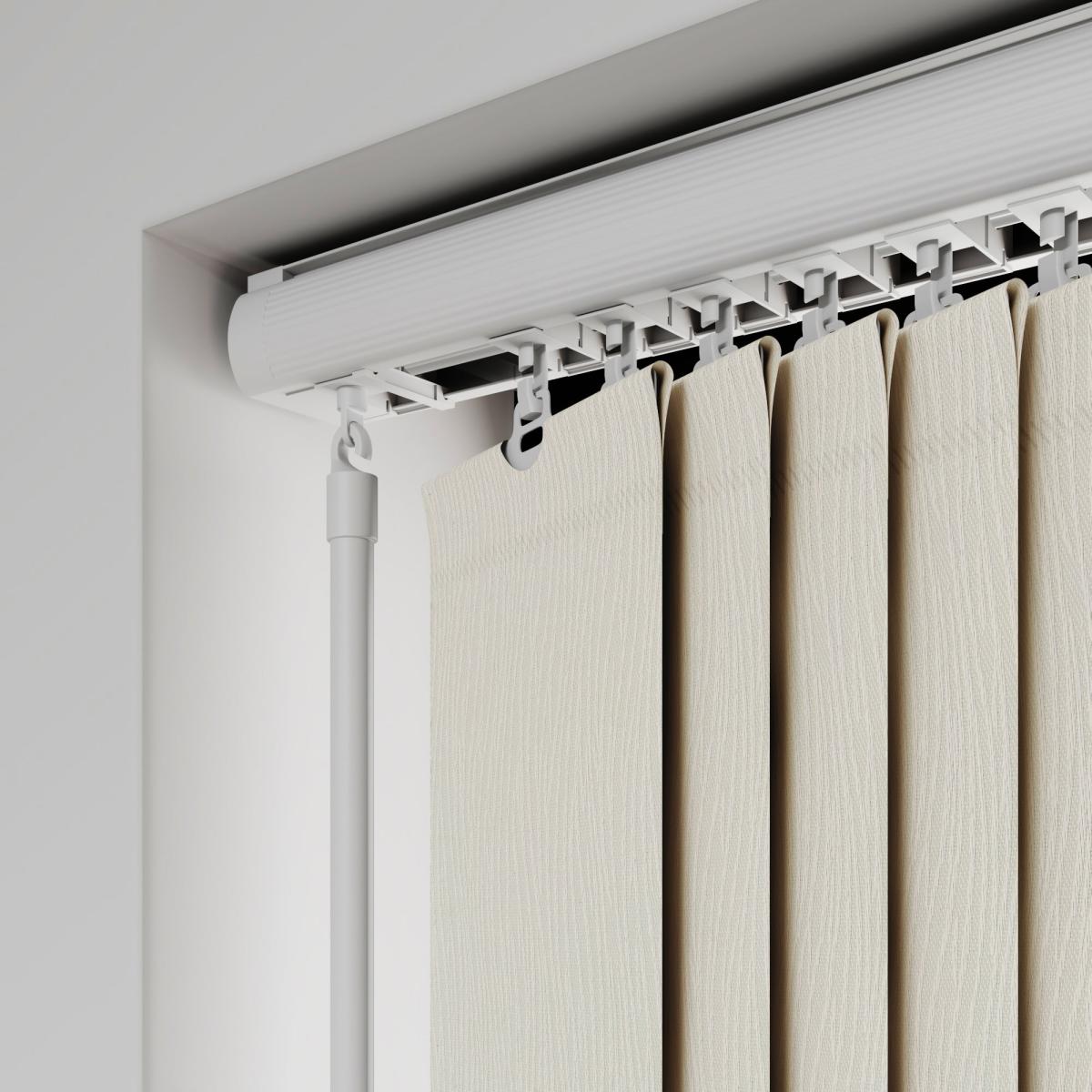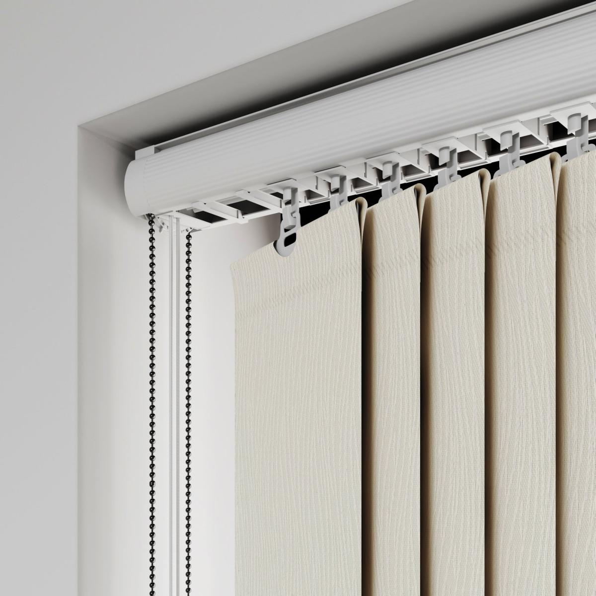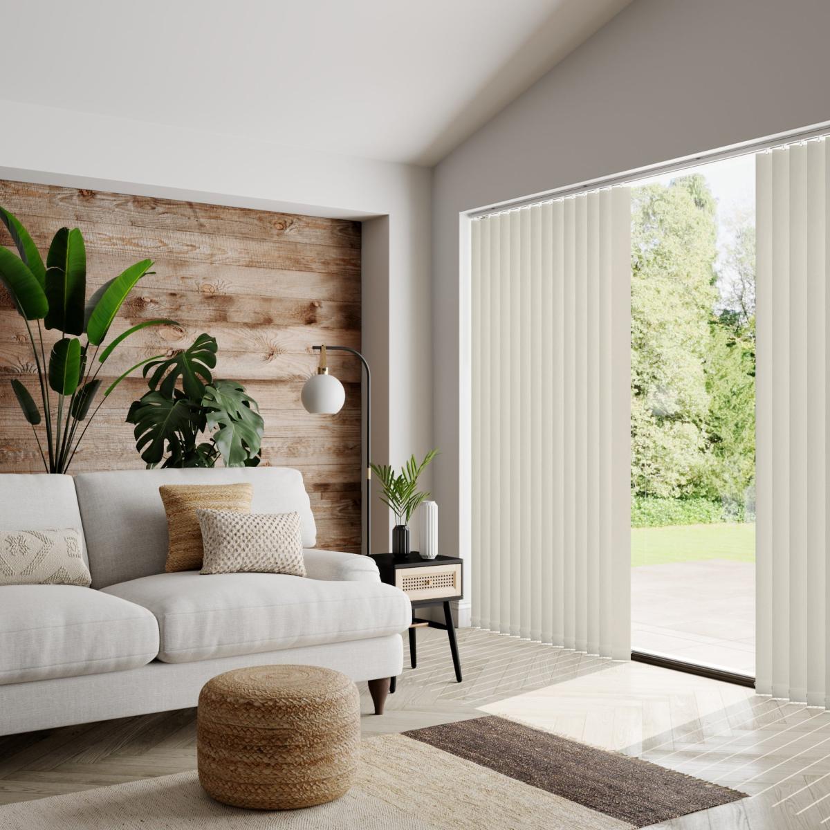 * Choose your fabric and colour * Select your fitting type, bracket type, and control type * Pick your stack side and bottom weight Featuring a eastern-inspired look, the Lucca is a great addition to any home and pairs beautifully with other global-inspired pieces and décor. Please note that there will be batch differences so the sample may vary slightly to the product. There is also a 0.5mm tolerance for the product.**Choosing your fitting type:** * Inside the recess: this gives a tidy, snug finish as it's made to fit your window exactly. * Outside the recess: this option is great if you want more light to enter your room when the blinds are open. **Choosing your bracket type:** * Top fix: fitted into the top of the window recess or ceiling for a neat finish. Recommended for inside recess. * Face fix: fitted to the wall above the window, outside of the recess so your blind will cover the entire window. Recommended for outside recess. Available in standard 89mm or longer 127mm lengths. **Choosing your control type:** * Wand: the wand control pulls your blind to your desired position over your window and also tilts the blind slats with a twist. This option is perfect for homes with pets or children as it hangs out of reach. * Chain: the chain control allows you to pull the chain to tilt the blind slats and use the draw cord to open and close. The standard length of the chain is 1m. Please read our [Blinds Safety Guide](https://www.dunelm.com/info/buying-guides/blinds-safety-guidance) for more information on how to make your chain child and pet friendly. **Choosing your stack side:** * Left stack: your blind slats will stack to the left of your window or door. * Right stack: your blind slats will stack to the right of your window or door. * Split stack: your vertical blind will open from the centre, leaving a stack of blind slats on both the left and right of your window or door. **Choosing your bottom weight:** * Chained weights: each blind slat is weighted and includes a stabilising chain at the bottom which gives a classic feel and is great for drafty days. * Chainless weights: each blind slat is weighted at the bottom removing the need for a stabilising chain. This option is more pet and child friendly. **Need help deciding or measuring? **Book a free appointment with one of our consultants!