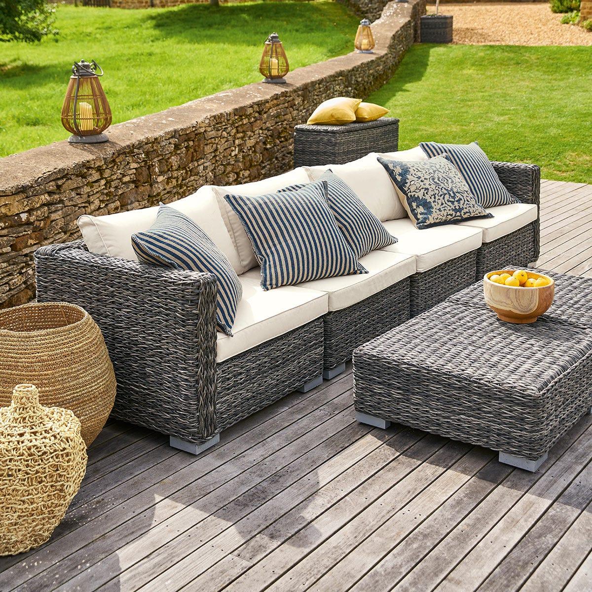 Simple clean lines, a low back and deep, comfortable off-white weather-resistant cushions make the Luccombe Range ideal for more contemporary outdoor spaces, such as a city roof terrace or poolside patio. Pair the corner/end unit with other pieces from the collection to create a modern modular outdoor seating arrangement. Luccombe Corner/End Unit - Flint Grey
